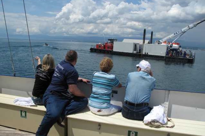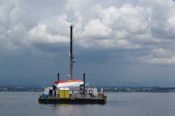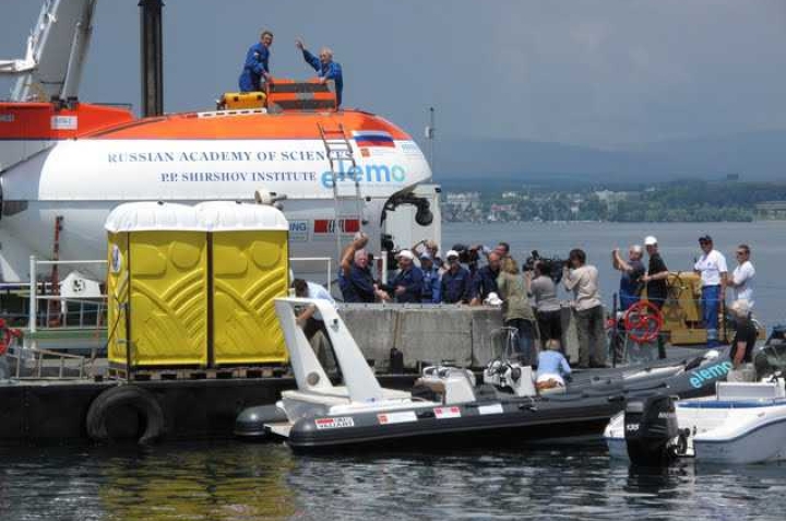 14 июня 2011 года российские глубоководные обитаемые аппараты "Мир-1" и "Мир-2" совершили первое погружение на дно Женевского озера в рамках научной программы по изучению водоема, élémo. Погружение продолжалось около 40 минуты, за это время аппараты успели опуститься на глубину 296 метров, а участники экспедиции - увидеть останки парохода "Рона" и несколько рыб. (Photos - Nasha Gazeta.ch)