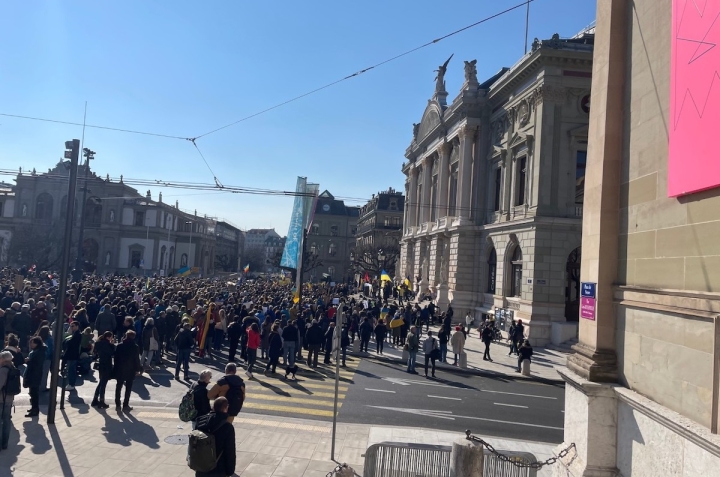 5 марта в нескольких швейцарских городах состоялись акции, участники которых выражали солидарность с украинским народом и требовали немедленного прекращения военных действий на территории Украины. Митинг в Женеве прошел на Place de Neuve перед Оперным театром, а в Берне протестующие собрались перед Федеральным дворцом. Самая массовая демонстрация прошла в Цюрихе, где на улицы вышли около 40 000 человек, в том числе проживающий в Швейцарии российский писатель Михаил Шишкин. Многотысячная колонна прошла от площади Platzspitz возле Национального музея до площади Sechseläutenplatz. Фото из Женевы и Берна – © Nashagazeta.ch; фото из Цюриха предоставлены участниками акции. Нажмите на фото, чтобы увидеть его полностью.