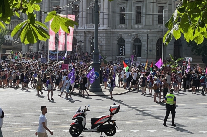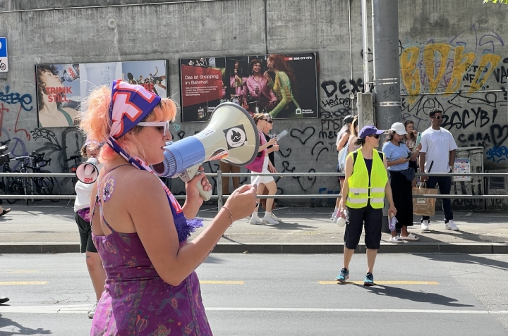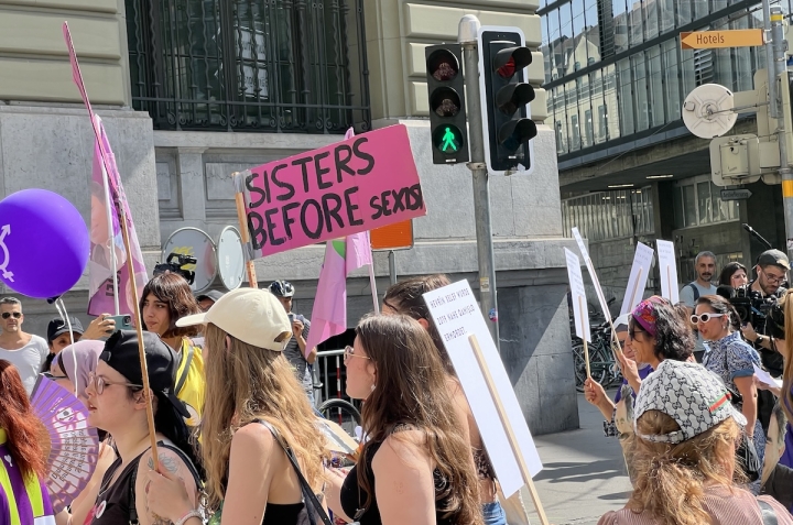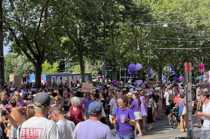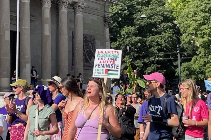 14 июня 2025 года в швейцарских городах прошли забастовки феминистских коллективов. Самая массовая акция состоялась в Берне, где, по подсчетам организаторов, на улицы вышли 35 000 человек. В Женеве полиция насчитала 3 500 участников. Если забастовка в Берне была сосредоточена на темах равенства и солидарности, то в Женеве, наряду со слоганами о гендерной борьбе, было замечено множество палестинских флагов. О целях акции читайте в нашем материале. Все фото – Nasha Gazeta.