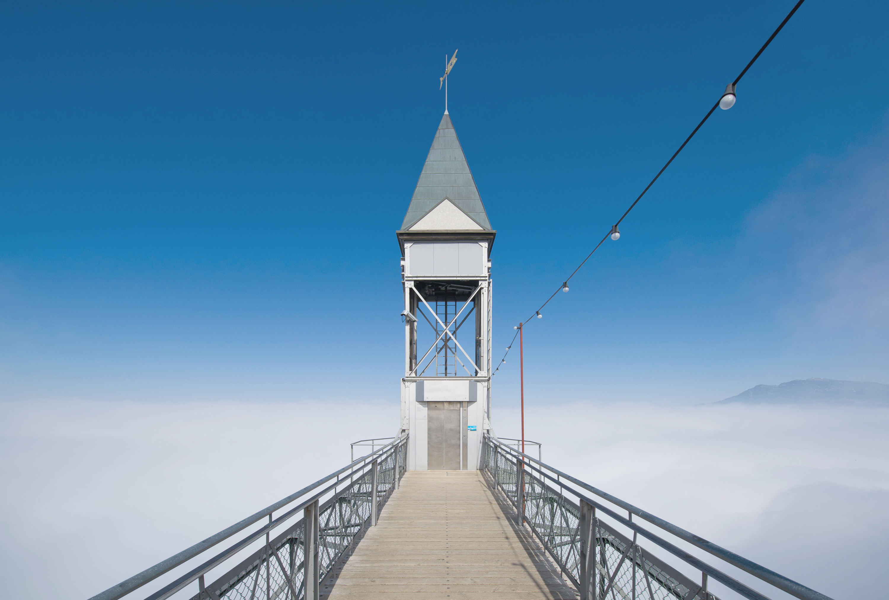 Подъемник и филигранная конструкция были спланированы и построены инженерами и подрядчиками из Caspar Wüst & Cie из Зеебаха (Цюрих) и Löhle & Cie из Клотена. Опорная конструкция состоит из решетчатой башни 2×2 м в плане с крестообразными раскосами, первая треть башни находится в вырубленной в скале шахте.