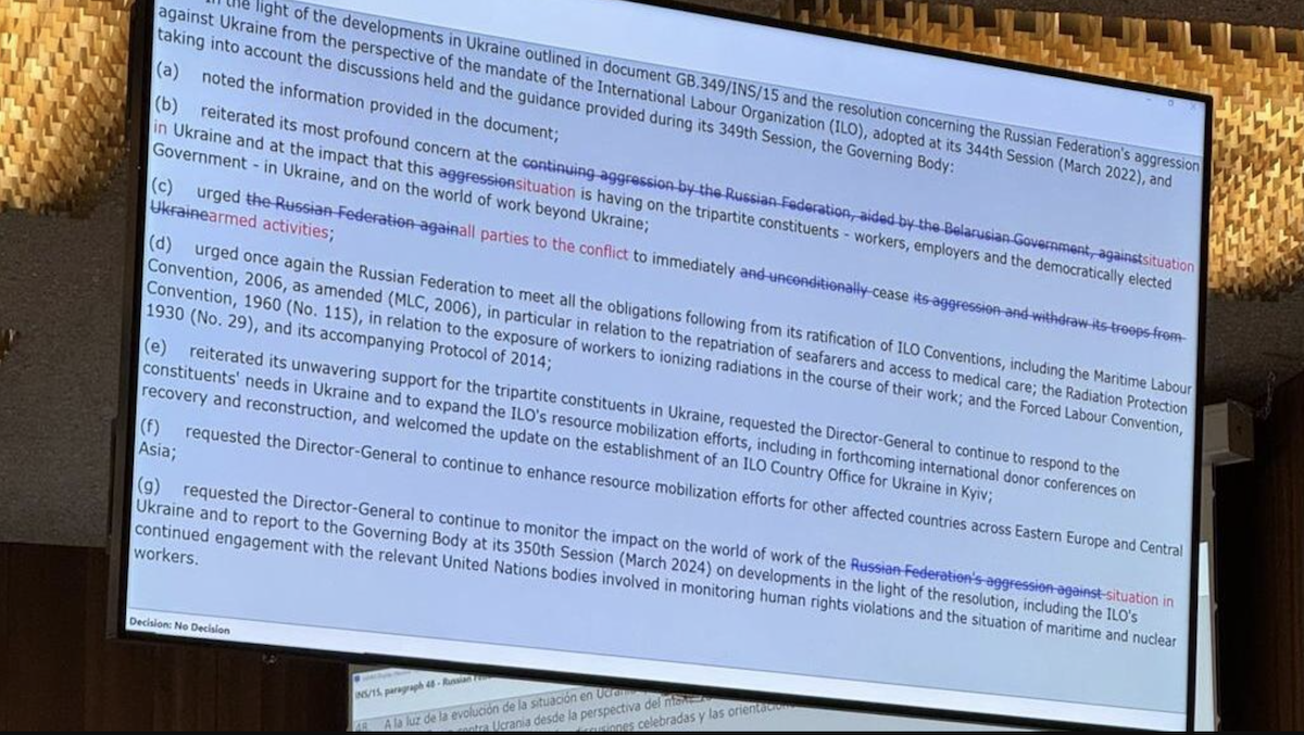 Резолюция Международной организации труда с поправками, предложенными Россией. Женева, 7 ноября 2023 г. DR