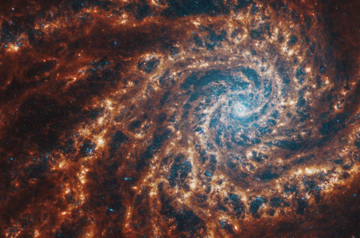 Спиральная галактика, сфотографированная телескопом Джеймса Уэбба, в создании которого также принимали участие специалисты ETHZ. Фото: NASA, ESA, CSA, STScI, Дженис Ли (STScI), Томас Уильямс (Оксфорд) и команда PHANGS
