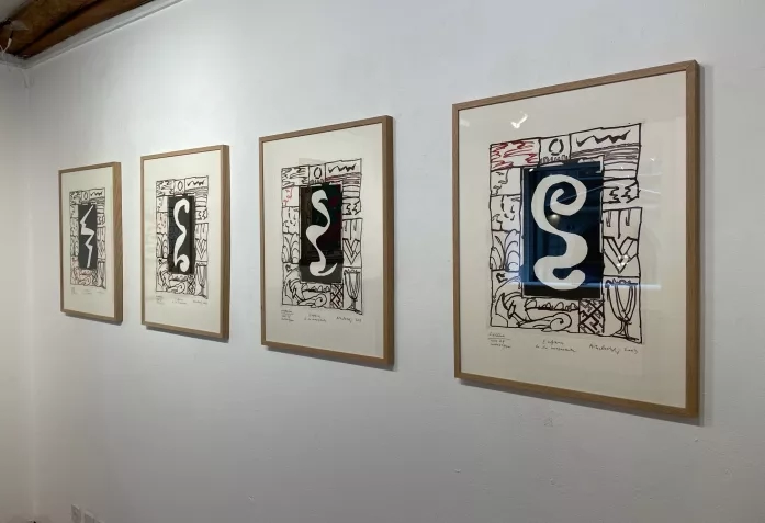 Работы, представленные в женевской галерее Galerie Sonia Zannettacci, относятся к относительно недавнему периоду творчества Пьера Алешинского, с 2003 по 2021 годы, живопись, литография. Внимание посетителя прежде всего приковывает серия изображений, напоминающих буквы какого-то экзотического алфавита.