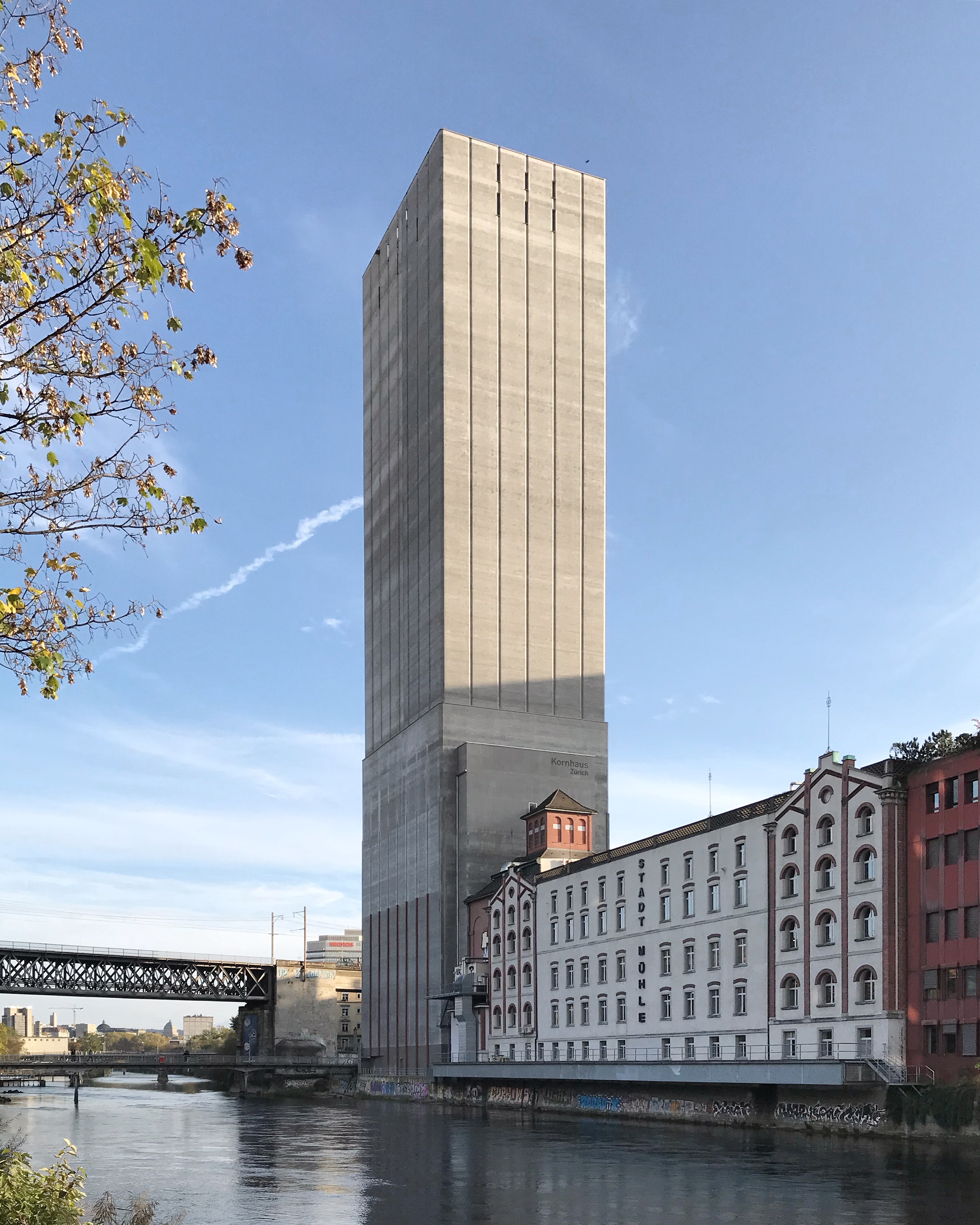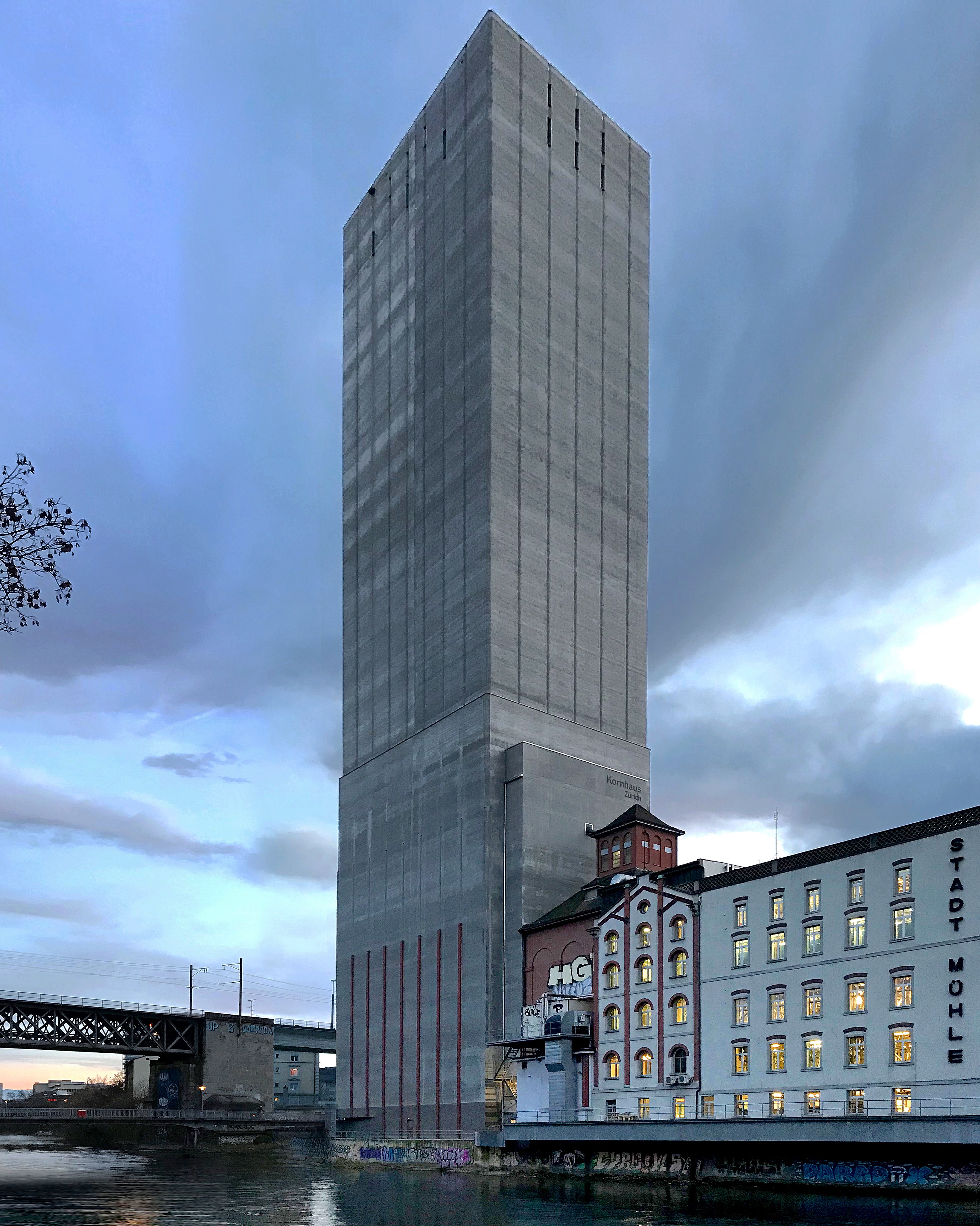 Kornhaus, на мой взгляд, - самое радикальное здание в Цюрихе. Интересно, что радикальность эта – не порождение креативного эго архитектора, но атрибут абсолютной функциональности и рациональности. Радикальное градостроительное решение – поставить индустриальный зерновой элеватор в центре исторической части города с одной из самых высоких в мире цен за кв. м земли – вызвано стратегическими, оборонительными соображениями. В случае войны, голода или осады города, небоскрёб сможет обеспечивать горожан. Радикальное фасадное решение – не делать ни одного окна в фасаде здания – продиктовано его функцией хранилища, а радикальная высота – техническими требованиями к объёму хранения.