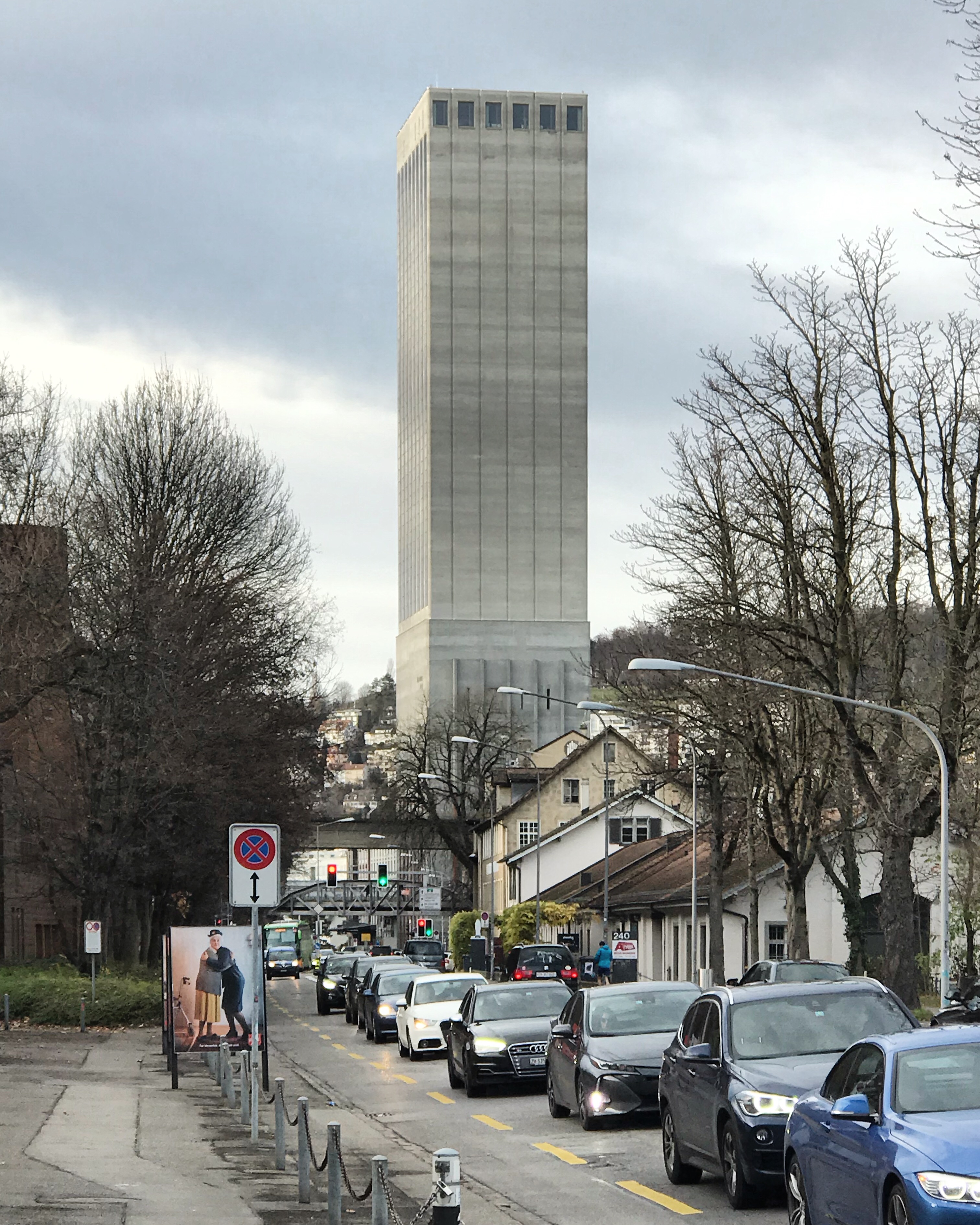 Интересно не только само здание, но и то, как приходил процесс утверждения проекта его строительства. На проведённом референдуме жители Цюриха решили, преодолев некоторые разногласия, что бетонный, ничем не приукрашенный небоскрёб без окон и дверей не слишком страшен для центра города, ведь главное – это его важное для людей предназначение. И пусть здание чрезвычайно брутально, но раз оно правдиво отражает свою индустриальную, утилитарную сущность, то проблем нет. Впрочем, нашлись архитекторы-активисты, которые предложили «украсить» здание с помощью вертикального озеленения, но это предложение было отвергнуто как нецелесообразное и слишком дорогое.