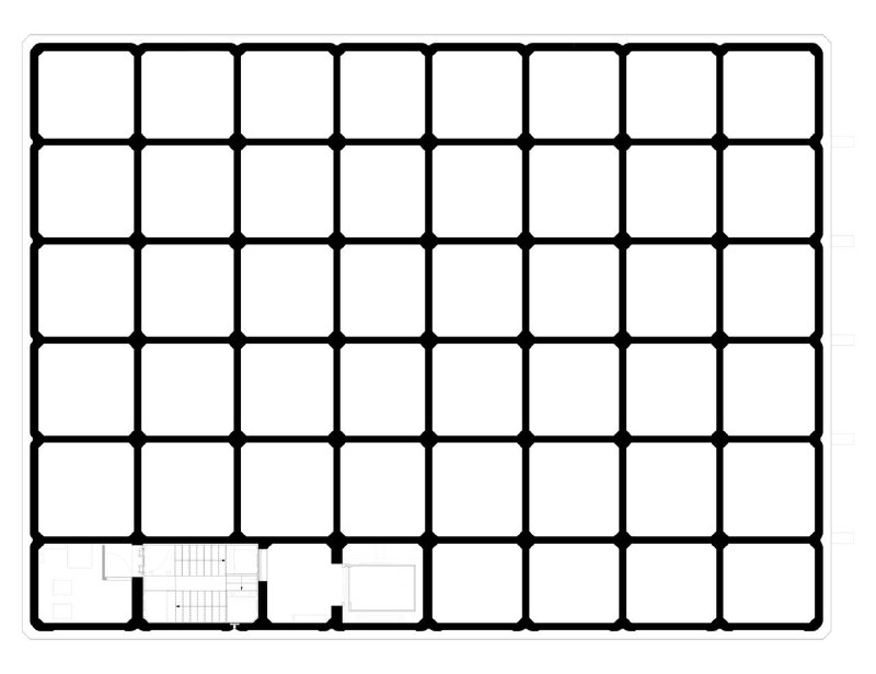 Внутри здание разделено на сетку из 48 квадратных в плане вертикальных объема, большинство из которых хранят зерно, а несколько отданы под вертикальные коммуникации – лестницы и лифты. Наверху находится зал для мероприятий и обустроена зона для гнездования птиц. Единственное исключение с точки зрения архитектуры представляет южный фасад здания здания – он обшит солнечными панелями.
