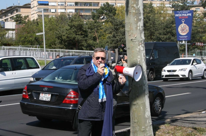 Собравшиеся рассказали Нашей Газете.ch, что они выступают против политики Владимира Путина, но не против русских. «Мир нашим народам», - гласила надпись на одном из двух плакатов, написанных на русском языке. Напомним: в это же время в женевском отеле Intercontinental проходила четырехсторонняя встреча с участием представителей России, Украины, ЕС и США.