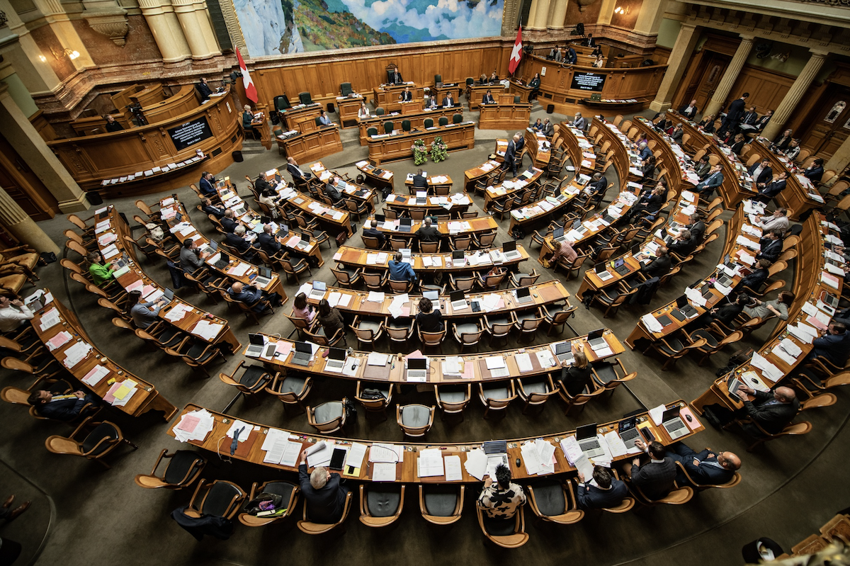Зал заседаний Национального совета. Фото: Parlamentsdienste / Rob Lewis, Parlament.ch