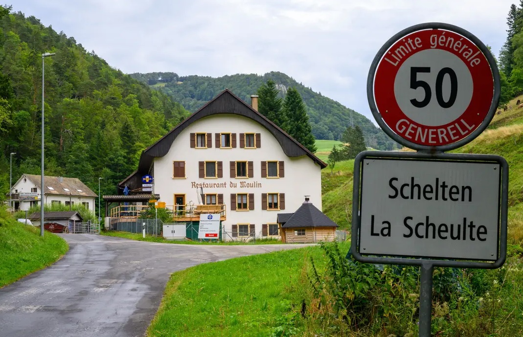 Шелтен (Schelten), до 1914 года официально называвшийся La Scheulte, – это третий самый маленький населенный пункт в Швейцарии и второй в Бернской Юре. Несмотря на наличие школы с пятью учениками, в 2016 году там еще не было ни мобильной телефонной сети, но государственного водоснабжения. Сегодня в деревне Шелтен проживает всего 36 человек, отличающихся удивительной политической активностью: по данным Федеральной службы статистики, они чаще участвуют в федеральных референдумах, чем кто-либо другой в Швейцарии! На дороге Scheltenpass путешественник обратит внимание на часовню св. Антуана, построенную в 1860 году, но гораздо большей популярностью пользуется деревенский ресторан, который по-русски мы назвали бы «У мельницы».  На местных же языках при подъезде к нему со стороны кантона Юра на указателе написано Restaurant du Moulin, а со стороны кантона Золотурн – Schelten-Mühle. Среди посетителей – как жители Юры, так и немецкоязычных кантонов. «Я сам констатировал, что некоторые рестораны посещают исключительно сепаратисты Юры, а другие – приверженцы Берна. В нашем же ресторане два пожилых жителя кантона Юра сидят за соседним столиком с немецкоязычной семьей из шести человек, глава которой, фермер, легко переходит на французский, и считает это совершенно нормальным», - поделился Ханс-Рудольф Рот.