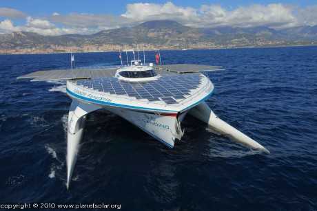 Tûranor PlanetSolar, первый катамаран на солнечных батареях, созданный по инициативе швейцарца Рафаэля Домжана, отправился в кругосветное плавание – воплощать в жизнь фантазии Жюля Верна и мечту о чистой планете.