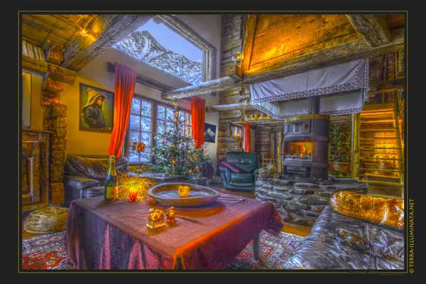 «Из окон этого шале, - комментирует Юрий одну из фотографий, - было видно горы в яркий солнечный день, но, как известно, при таком освещении углы внутри дома на снимке получаются совершенно темными. Невозможно ни увидеть картинку полностью залитой светом, потому что глаз приспосабливается, ни передать краски на обычной фотографии. Я накладываю друг на друга несколько снимков, с разными экспозициями, освещая все точки пространства: в результате получается яркая, рождественская атмосфера, которую и хотелось передать».