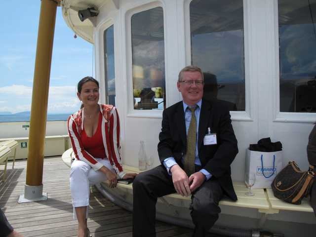 Все эти вопросы собравшиеся задавали себе и друг другу, не находя четких ответов. Некоторые со знанием дела указывали в озерную даль, где, действительно, покачивалось на водной глади сооружение, которые Посол РФ И.Б. Братчиков и главный редактор Нашей Газеты Надежда Сикорская внимательно следили за развитием событий