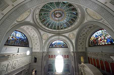 о и с энергией погружает своих подопечных в атмосферу центрального административного здания страны, начиная тур с презентабельного холла. Катрин не скупится на детали, поясняя мифы, историю, искусство. На время группа задерживается у скульптурного изображения трех основателей Конфедерации, чтобы лучше представить значение многокультурности и федерализма страны, а также значение архитектурного творения, в котором они находятся.
