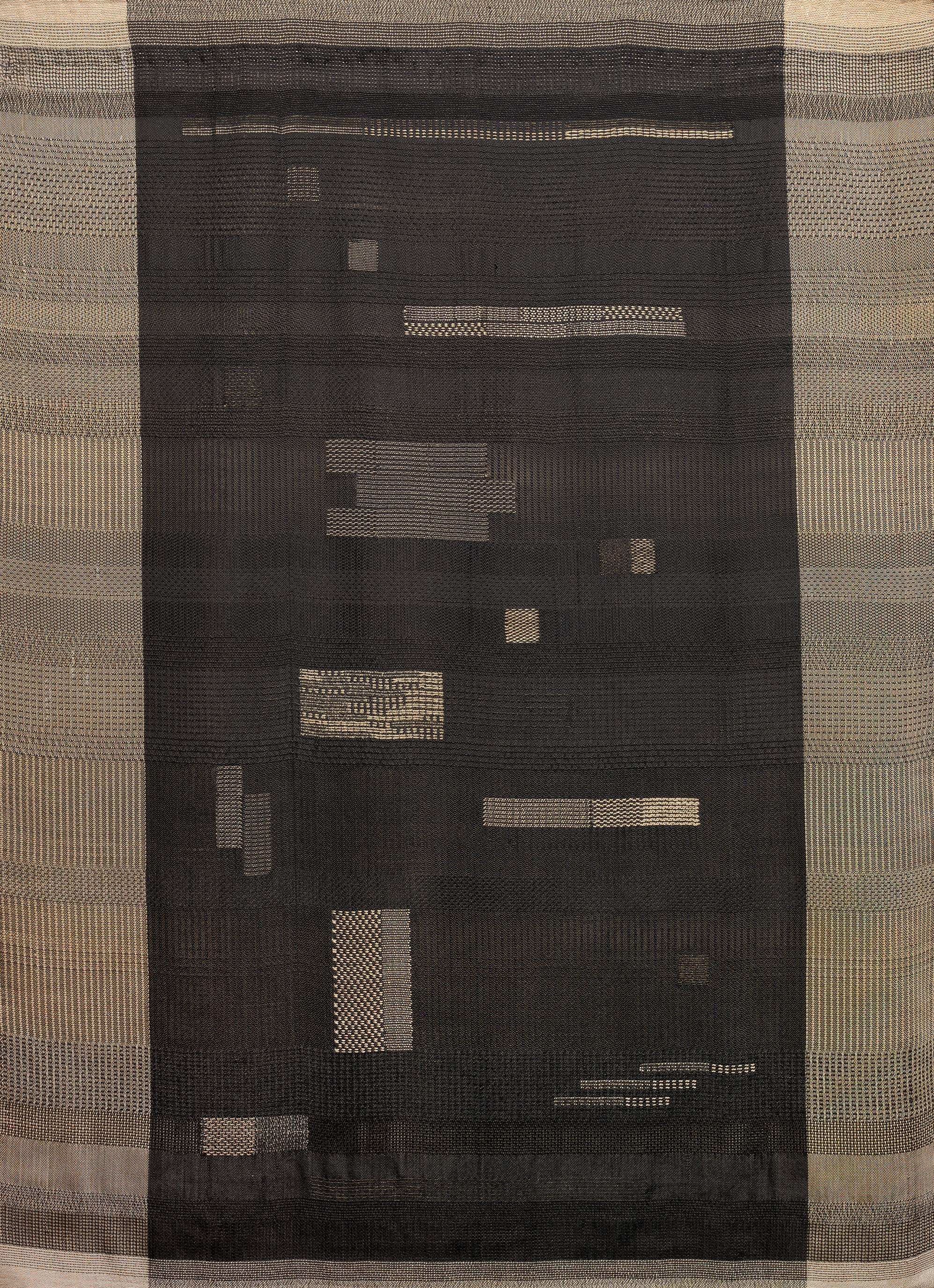 Экспозиция в Центре Пауля Клее построена вокруг архитектурных проектов Анни Альберс – одним из первых стала ее дипломная работа. В 1930 году по заказу тогдашнего директора Баухауса, базельского архитектора Ханнеса Майера, она изготовила тканевые полотна для акустической изоляции стен актового зала Всеобщего немецкого профсоюзного объединения в Бернау. Альберс разработала специальную двуслойную ткань: шениль с одной стороны поглощала звук, а целлофановые волокна с другой отражали свет и излучали серебристый блеск. Впоследствии Альберс нередко использовала текстиль не только для декора, но и для решения конкретных архитектурных задач и в качестве отдельных архитектурных элементов – от ширм для зонирования пространства до вплетения металлизированных волокон в ткань для гардин для отражения и рассевания света. Ее энтузиазм в отношении новых материалов и различных способов их использования был безграничен.