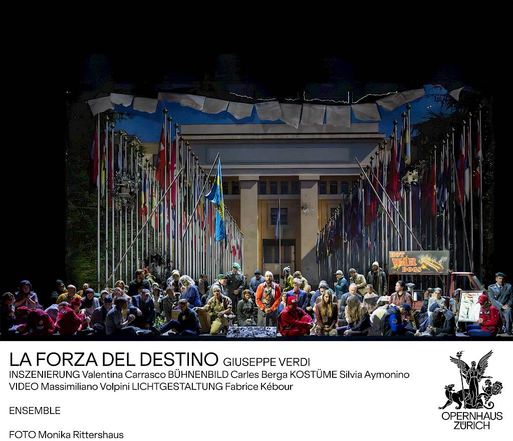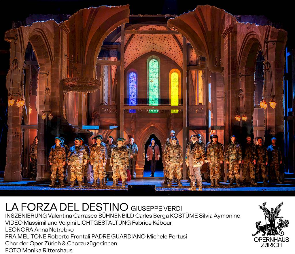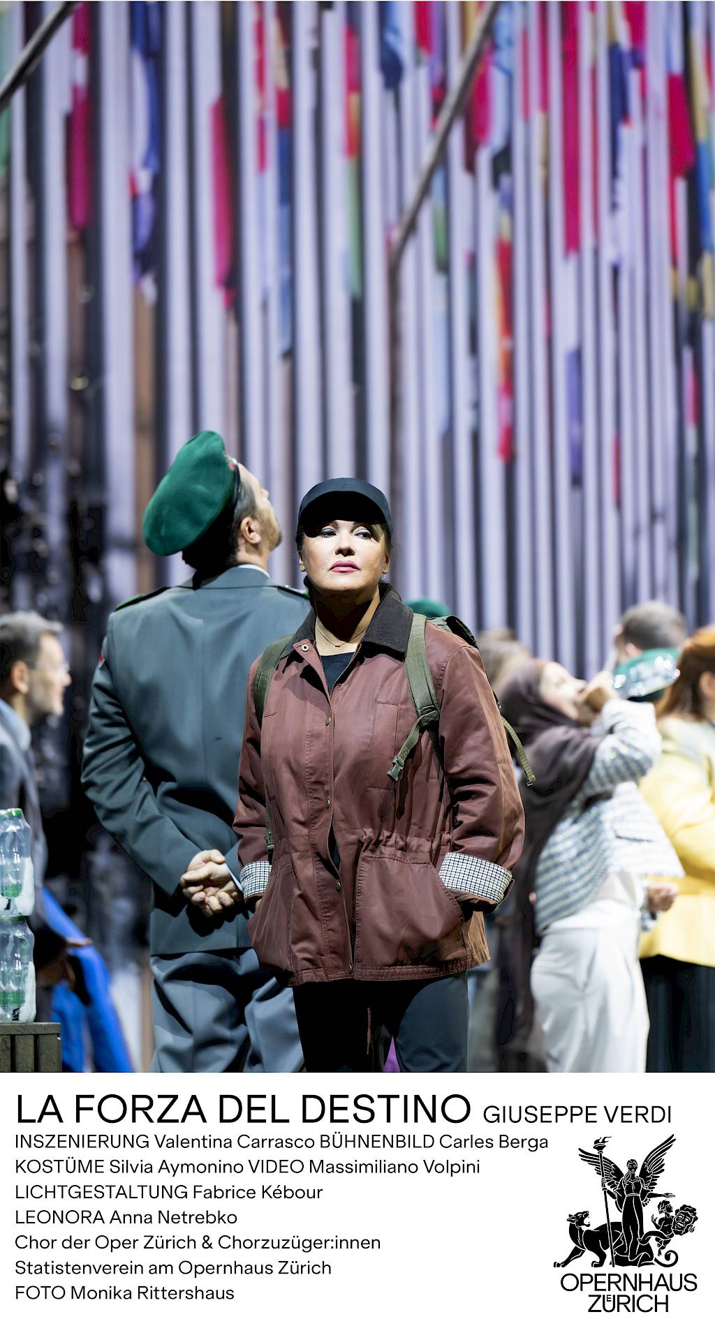 Après trois ans d'absence, la soprano russe de renommée mondiale Anna Netrebko est revenue à l'Opernhaus Zürich dans le rôle de Donna Leonora dans La forza del destino, le chef-d'œuvre de Giuseppe Verdi, commandé par le tsar Alexandre II et présenté pour la première fois au public à Saint-Pétersbourg. La première zurichoise a eu lieu malgré la demande de l'ambassade d'Ukraine en Suisse de l'annuler.