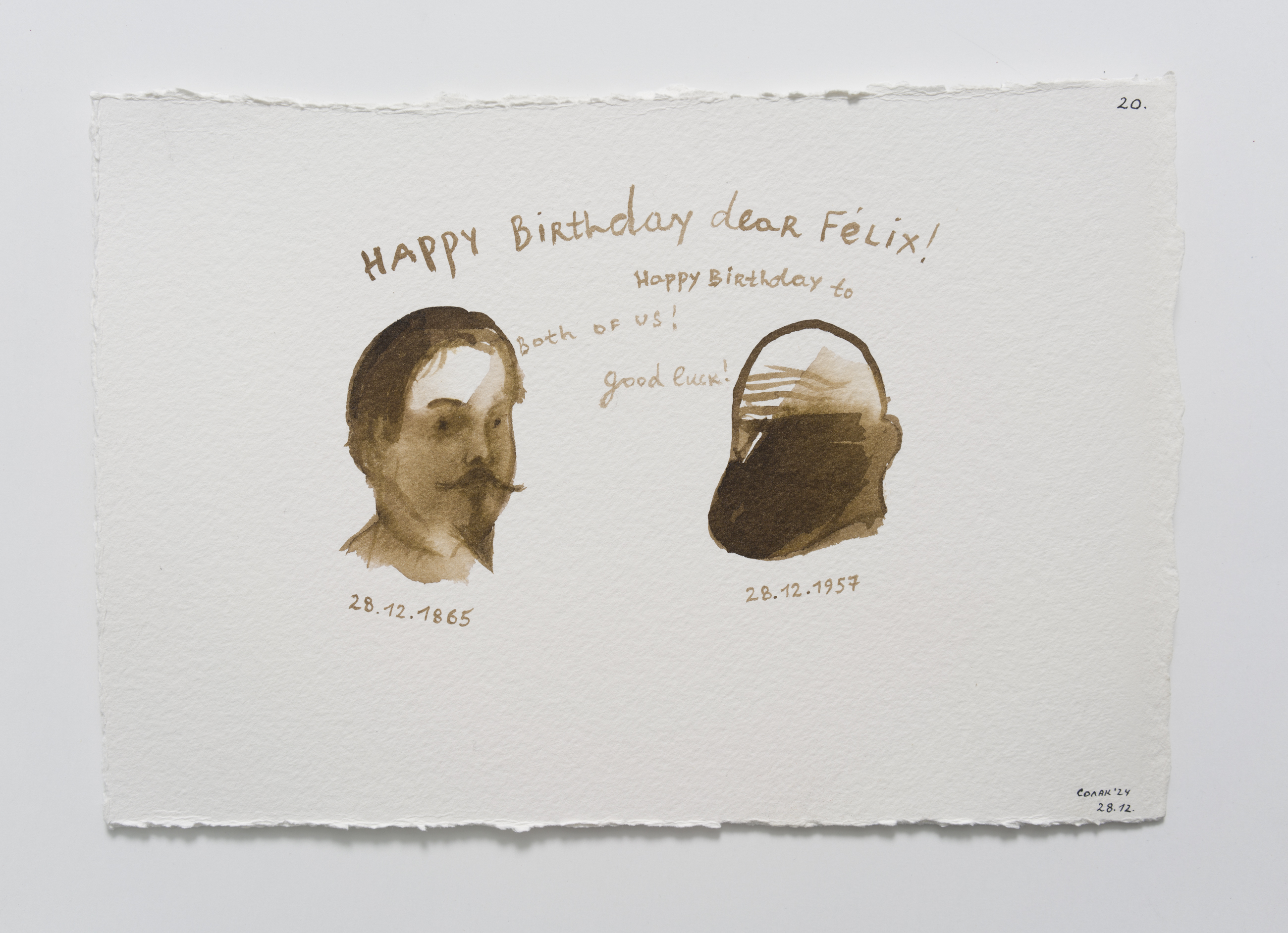 Своей выставкой «Быть Валлотоном» на вилле «Флора» Солаков не просто признается в любви к знаменитому предшественнику, родившемуся в один с ним день (как и наш Владимир Татлин, и американский актер Дензел Вашингтон – все они члены «клуба рожденных 28 декабря»), но и вступает с ним в диалог «на равных». Солаков то продолжает оригинальный замысел Валлотона, дорисовывая деревья и людей; то комментирует его картины, сочиняя смешные тексты и развивая забавные ситуации; то создает собственные произведения, «опирающиеся» на сделанное Валлотоном за сто лет до него. Иногда Солаков откровенно озорничает – например, дописывая все пропущенные им когда-то «аксант эгю» в имени «Félix», или создавая обойный принт с картинами швейцарского художника, найденными в социальных сетях.