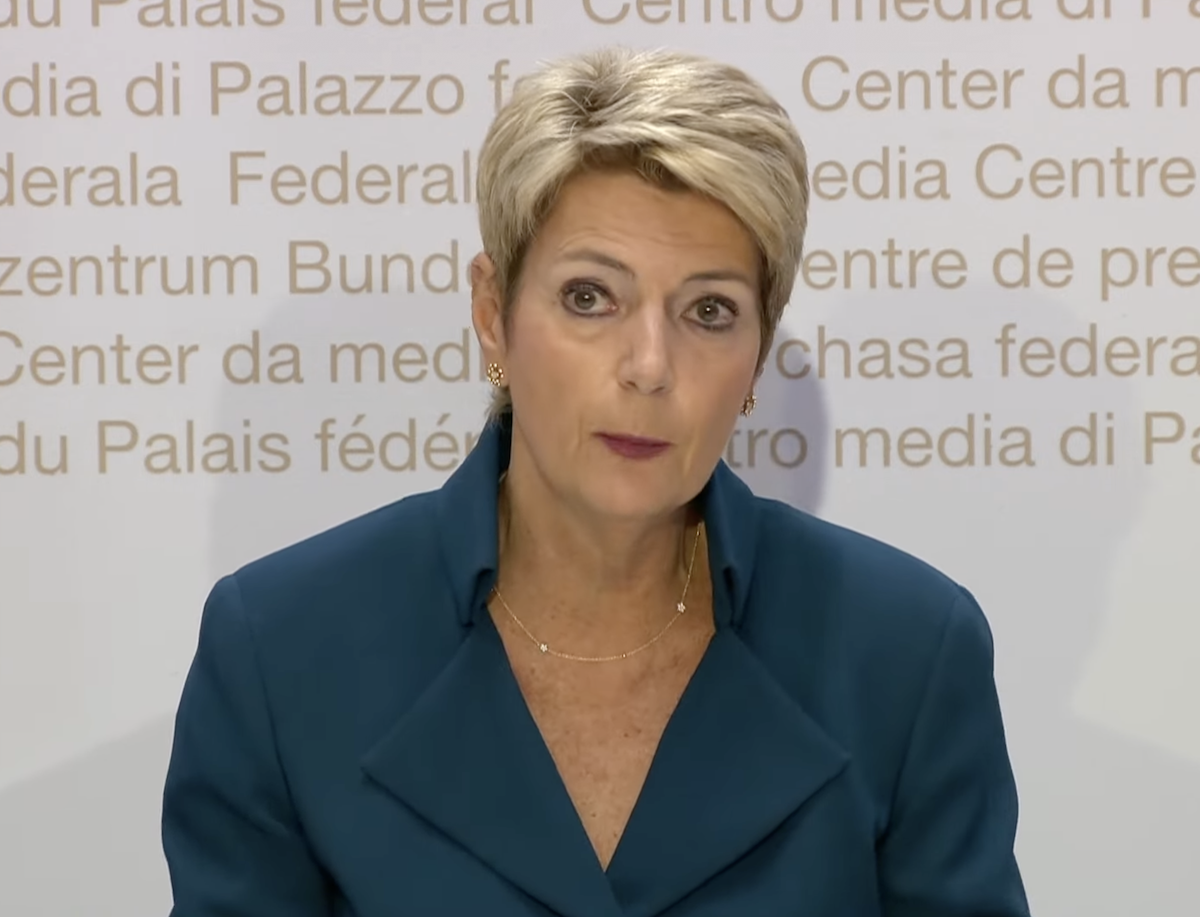 Карин Келлер-Суттер представляет новые меры журналистам. Скриншот трансляции пресс-конференции от 6 июня