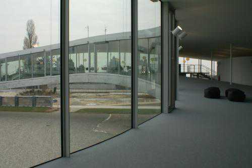 Рассказывая о Rolex Learning Сentre, хочется говорить не о планировке здания, а о географии некоей фантазийной планеты. По нему и гуляешь, как по удивительной холмистой местности, покрытой мягкими серыми коврами и скрывающей за каждым поворотом невиданные конструкции. С очередного холма вдруг откроется вид на 10 стеклянных шаров-комнат, предусмотренных для проведения семинаров, или на симпатичную «лужайку» с разбросанными на ней разноцветными круглыми пуфами, словно мячиками на детской площадке. Пуфы, кстати, сразу поднимают настроение.