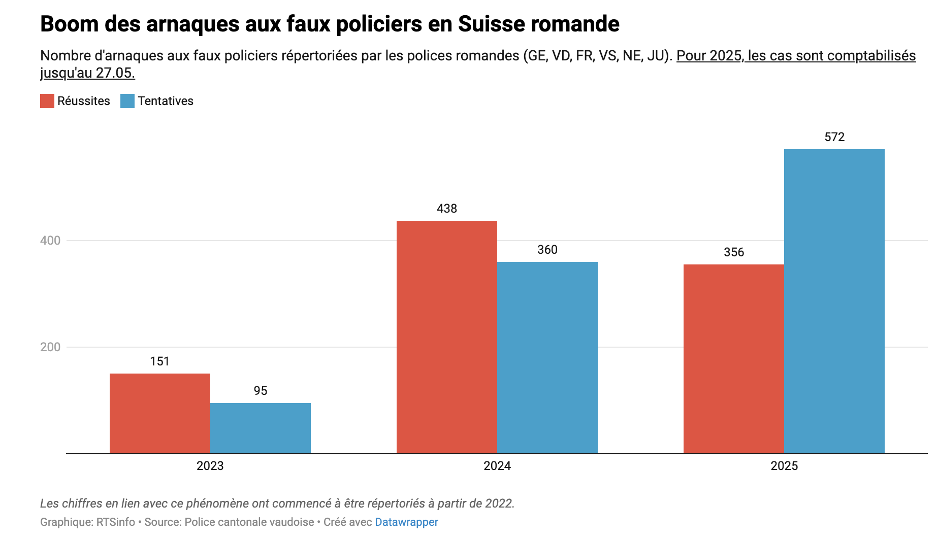 Вот уже примерно год, как полиция кантонов Романдской Швейцарии отмечает резкий рост числа мошенничеств с участием лиц, выдающих себя за полицейских. И на данный момент эта тенденция не собирается меняться. По данным RTS, за последние 5 месяцев во франкоязычном регионе страны было зарегистрировано более 1000 таких случаев, а за весь прошлый год их было 800, согласно данным полиции Во, проконсультировавшейся с коллегами из других кантонов.  Еще один тревожный факт, о котором сообщила RTS: общая сумма похищенного в период с января по май этого года оценивается в более чем 3 миллиона франков, в прошлом году она составила 3,7 миллиона.