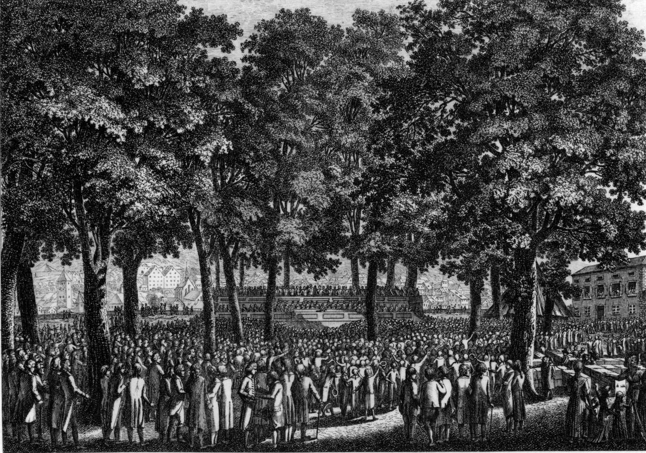 Изображение торжественной присяги, принесенной Цюрихцами, собравшимися на Линденхофе 16 августа 1798 года, Швейцарской Республике. [KEYSTONE - ANONYMOUS]