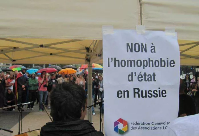 Рост насилия в отношении сторонников движения за равноправие и лиц с нетрадиционной сексуальной ориентацией в России вызывает все большую тревогу в Швейцарии. 8 сентября 2013 года по призыву Женевской федерации ЛГБТ-организаций (Fédération genevoise des associations LGBT) более 200 человек собрались на площади перед Дворцом Наций – женевской штаб квартирой ООН, чтобы выразить солидарность с подвергающимися нападениям и преследованию в России.