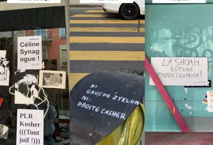 На прошлой неделе расположенная в Женеве организация CICAD, координирующая борьбу с антисемитизмом и распространением клеветнической информации, подала заявление о привлечении к уголовной ответственности анонимных авторов и распространителей серии плакатов и граффити, мишенями которых стали как отдельные кандидаты, участвующие в федеральных выборах – не арийского, как вы догадываетесь, происхождения, так и целые партии: «PLR Kosher», такой образец жанра красовался на улице Каруж в центре города.