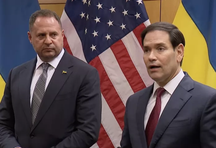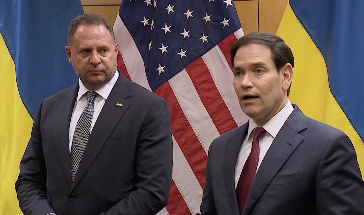 Андрей Ермак и Марко Рубио на пресс-конференции в Женеве. Скриншот трансляции RTS