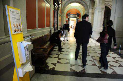 В здании парламента в Берне установили тумбы с дезинфекциирующими средставами
