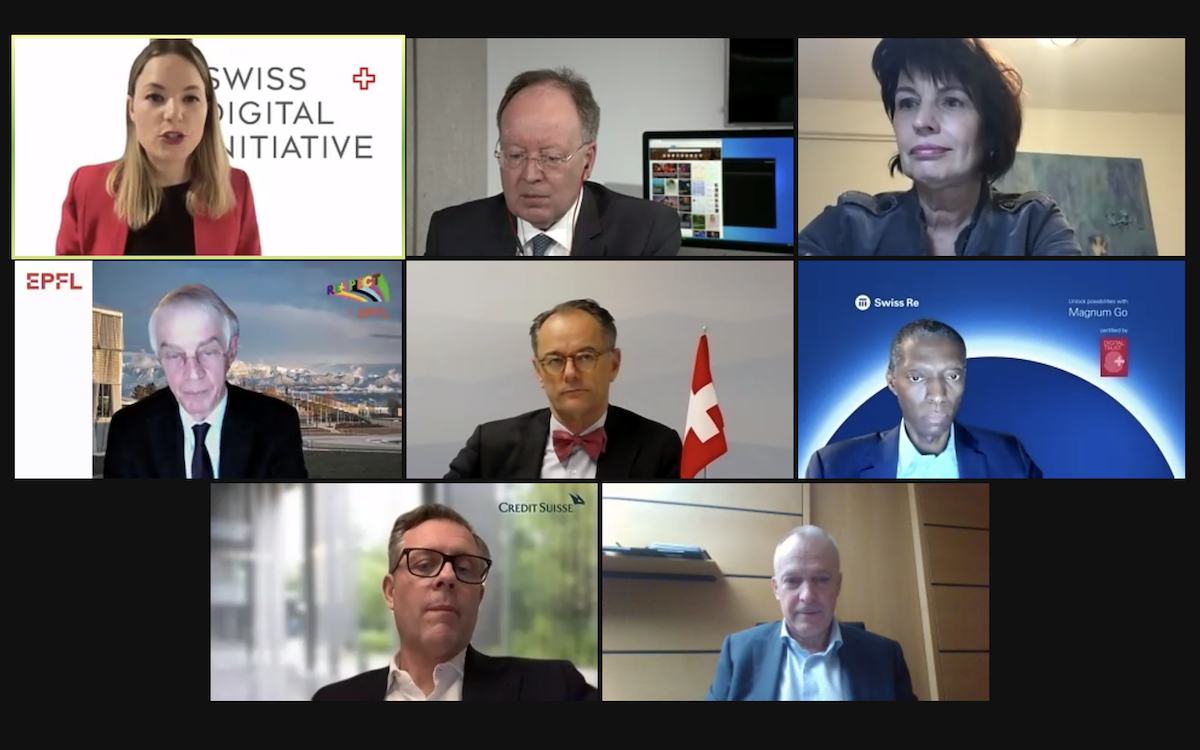 Новый швейцарский стандарт был официально представлен вчера вечером, как и положено всем цифровым инструментам, в ходе виртуальной пресс-конференции, к которой присоединилась и Наша Газета. Появившаяся сразу при подключении панель спикеров выглядела внушительно: бывшая федеральная советница и президент SDI Дорис Лойтхард, посол и руководитель отдела цифровизации федерального департамента иностранных дел Бенедикт Вехслер, президент Лозаннской федеральной политехнической школы (EPFL) Мартин Веттерли, генеральный директор Swisscom Урс Шаппи, генеральный директор Credit Suisse Андре Хельфенштайн, главный исполнительный директор по перестрахованию и член правления группы Swiss Re Мозес Оджейсехоба, генеральный директор и председатель совета директоров Kudelski Group Андре Кудельски.