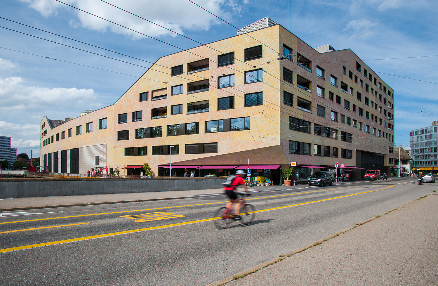 Один из самых интересных с архитектурной и типологической точек зрения жилых кооперативов в Цюрихе – это «Калькбрайте». С 1970-х годов у города существовали планы надстроить треугольную территорию, занятую трамвайным депо в округе 4. Реализовать эту смелую градостроительную идею вызвался кооператив единомышленников и энтузиастов новаторского экологического жилья, созданный в 2007 году. В результате открытого архитектурного конкурса выиграл проект цюрихского бюро «Müller & Sigrist», после чего новый жилой комплекс «поселился» прямо над существующим (и функционирующим) по сей день трамвайным депо.