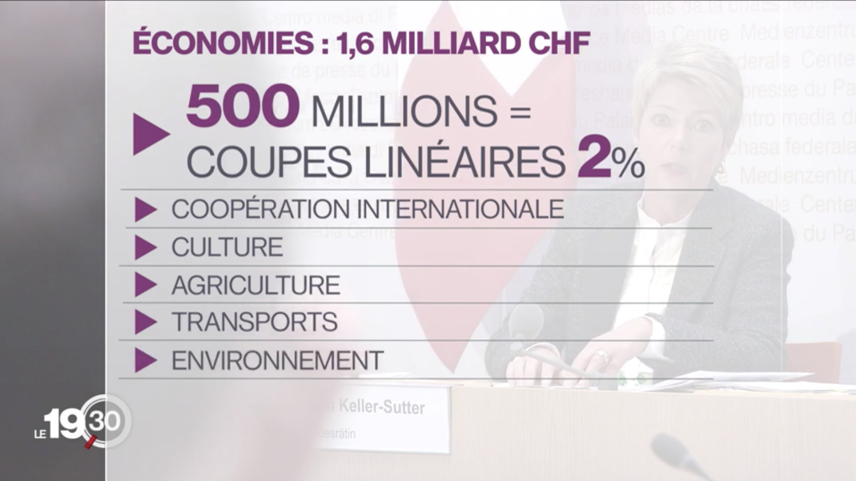 Карин Келлер-Суттер, с начала года сменившая портфель министра юстиции и полиции на портфель министра финансов, в своем первом в программе Форум телеканала RTS в новом качестве назвала сложившуюся ситуацию «затруднительной». Напомнив о продиктованном Конституцией обязательстве соблюдать «долговой тормоз», то есть поддерживать баланс между государственными расходами и доходами, уроженка Санкт-Галлена выразила надежду, что граждане поймут определенные правительством меры, поскольку «сами не могут тратить больше, чем им позволяет их доход». Призыв к традиционному швейцарскому прагматизму и «жизни по средствам» со стороны правительства понятен, однако встретит ли он понимание народа, еще вопрос. Впрочем, с пониманием или без, но затягивания ремней не избежать.