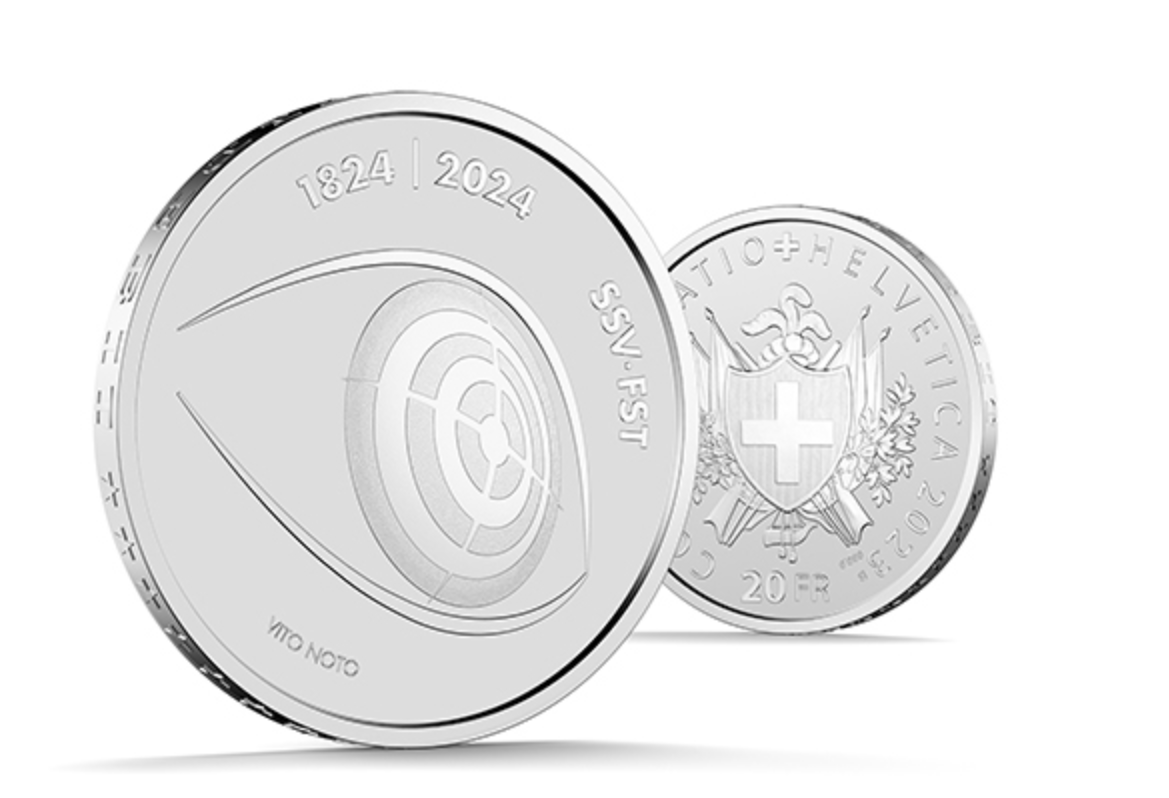 Как вы помните, в ноябре 2022 года Монетный двор Швейцарии Swissmint запустил свой новый бренд – «Eidgenössische Sondermünzen», что в переводе означает «Федеральные специальные монеты». И вот сегодня, 2 июня 2023 года, он выпускает первую из двух юбилейных монет, которые войдут в серию, посвященную двухсотлетию Швейцарской федерации спортивной стрельбы оно будет отмечаться в Аарау 16-18 августа 2024 года.