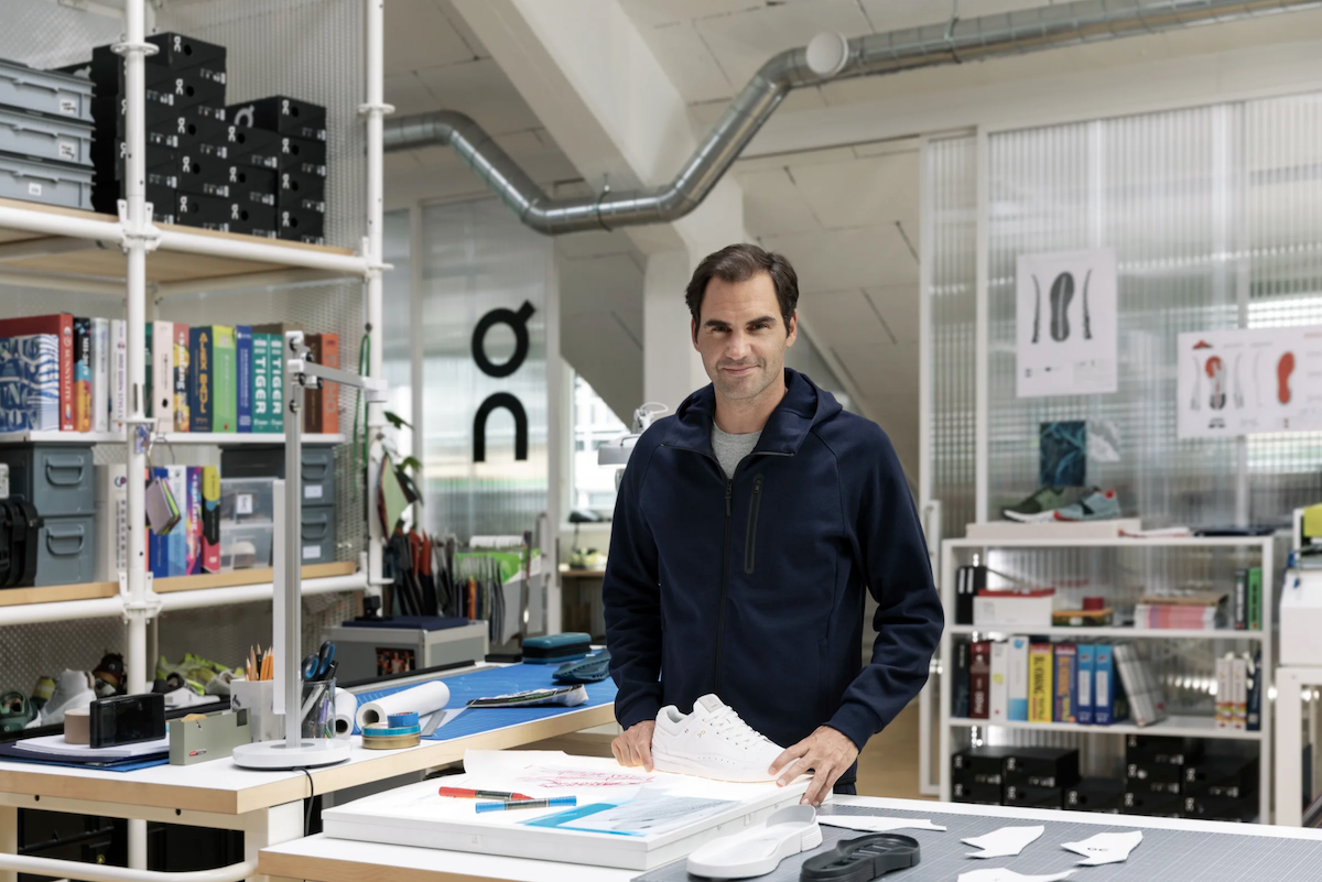 Роджер Федерер во время презентации новой модели кроссовок On в 2020 году (с) On