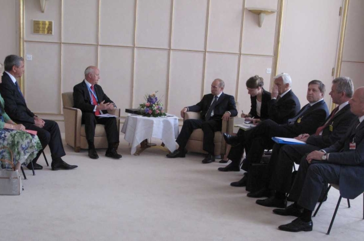 15 июня премьер-министр Российской Федерации Владимир Путин побывал в Женеве. Он выступил на 100-ой сессии Международной Организации Труда, а затем провел ряд двусторонних встреч: с генеральным директором Европейского Отделения ООН в Женеве К.-Ж .Токаевым, генеральным директором МОТ Х. Сомавия, исполнительным секретарем Европейской Экономической Комиссии ООН Я. Кубишем, верховным комиссаром ООН по делам беженцев А. Гутерришем, генеральным директором Международного Союза Электросвязи Х. Туре, президентом Международного Олимпийского Комитета Ж. Рогге, и наконец, с президентом Швейцарии Мишлин Кальми-Ре.
