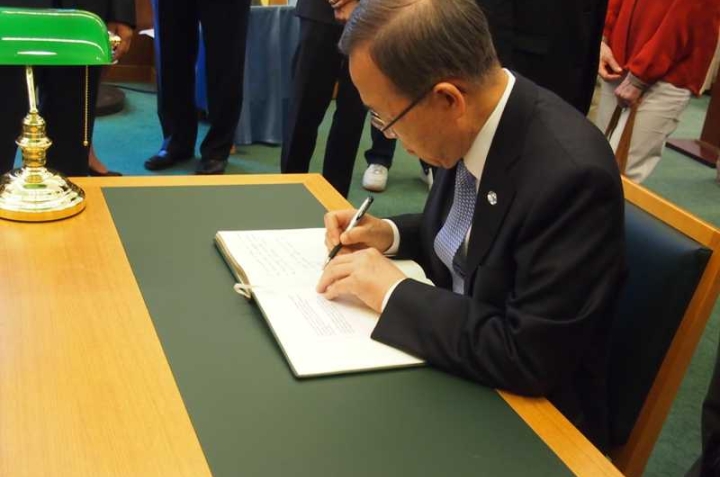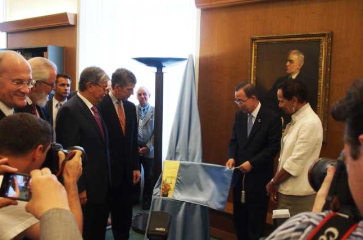 Вчера в библиотеке Европейского отделения ООН в Женеве состоялась инаугурация нового читального зала, который будет носить имя Джона Д. Рокфеллера младшего. Официальное название по-ооновски длинное: "Читальный зал архивов Лиги Наций и Объединенных Наций имени Джона Д. Рокфеллера мл.", но ясно, что уже через несколько дней все будут называть его просто "читалка Рокфеллера". На торжественной церемонии присутствовали Генеральный секретарь ООН Пак Ги Мун, находящийся в Швейцарии с официальным визитом, Генеральный директор Европейского отделения ООН Касым-Жомарт Токаев, Постоянный представитель США при Европейском офисе ООН Бетти Э. Кинг и наследник знаменитой династии Майкл Рокфеллер. Подробнее - в нашей статье, в сейчас несколько фотографий (© Nasha Gazeta.ch)