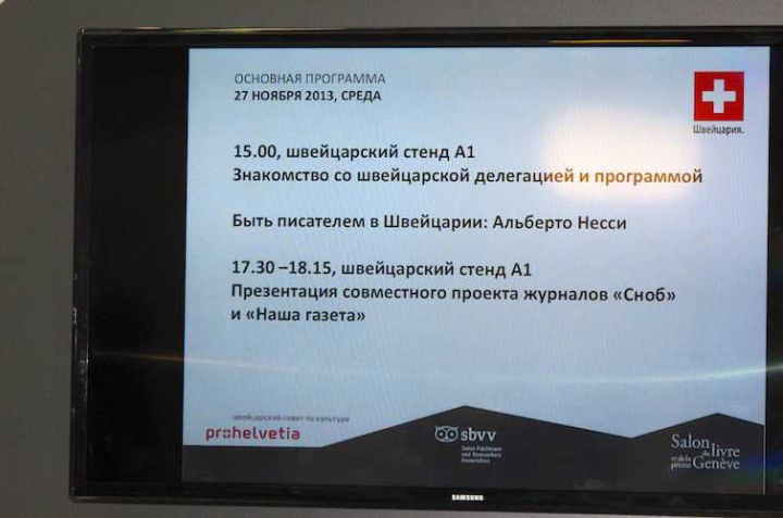 С 27 ноября по 1 декабря 2013 года в Центральном доме художника на Крымском валу в Москве проходила 15-я Международная ярмарка интеллектуальной литературы Non/Fictio№1, почетным гостем которой была Швейцария. В составе швейцарской делегации на ярмарке побывала и главный редактор Нашей Газеты.ch. С ее впечатлениями вы можете ознакомиться здесь, а пока - несколько картинок с выставки. (Все фото - Nashagazeta.ch)