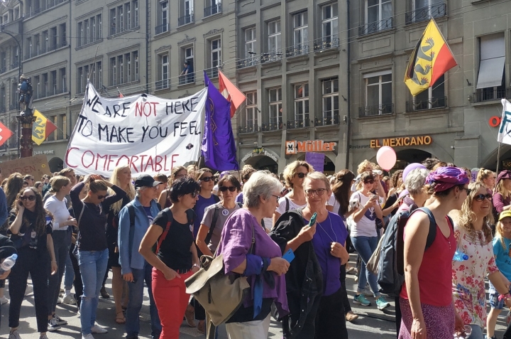 14 июня в Швейцарии состоялась общенациональная женская забастовка. Акции и шествия прошли в разных городах Конфедерации. Предлагаем вашему вниманию фоторепортаж из Берна, где по оценкам СМИ, на улицы вышли около 40 000 человек. Все фотографии - (c) Nashagazeta.ch