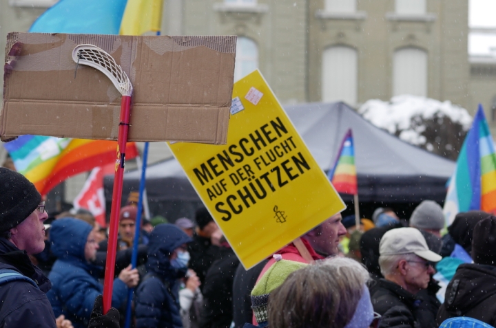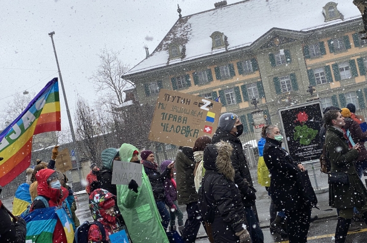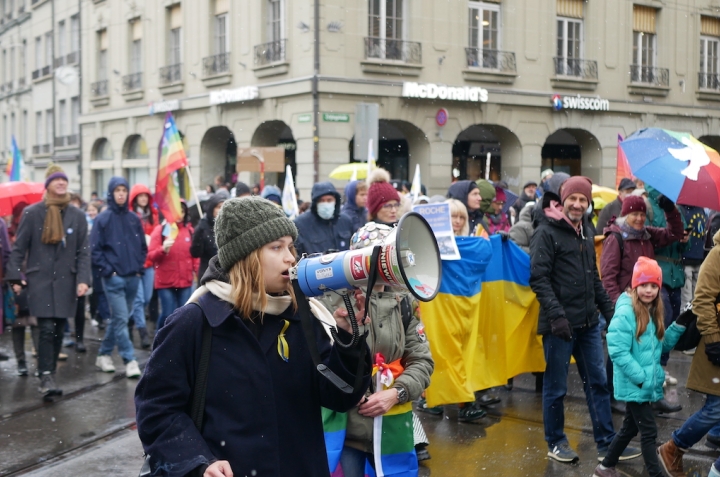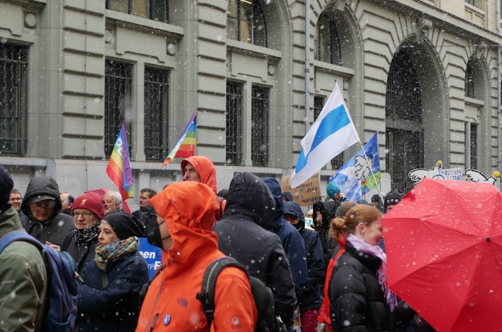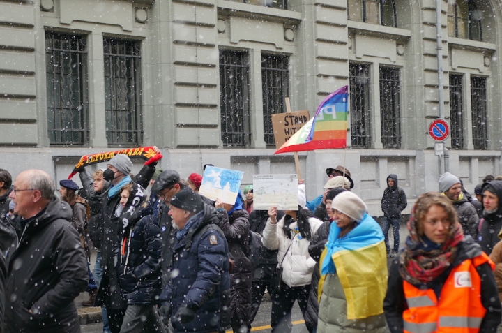 2 апреля в Берне около десяти тысяч человек вновь вышли на демонстрацию против войны. О том, как проходил митинг, читайте в нашем репортаже. Нажмите на фото, чтобы увидеть его целиком. Все фото – Nashagazeta.ch.