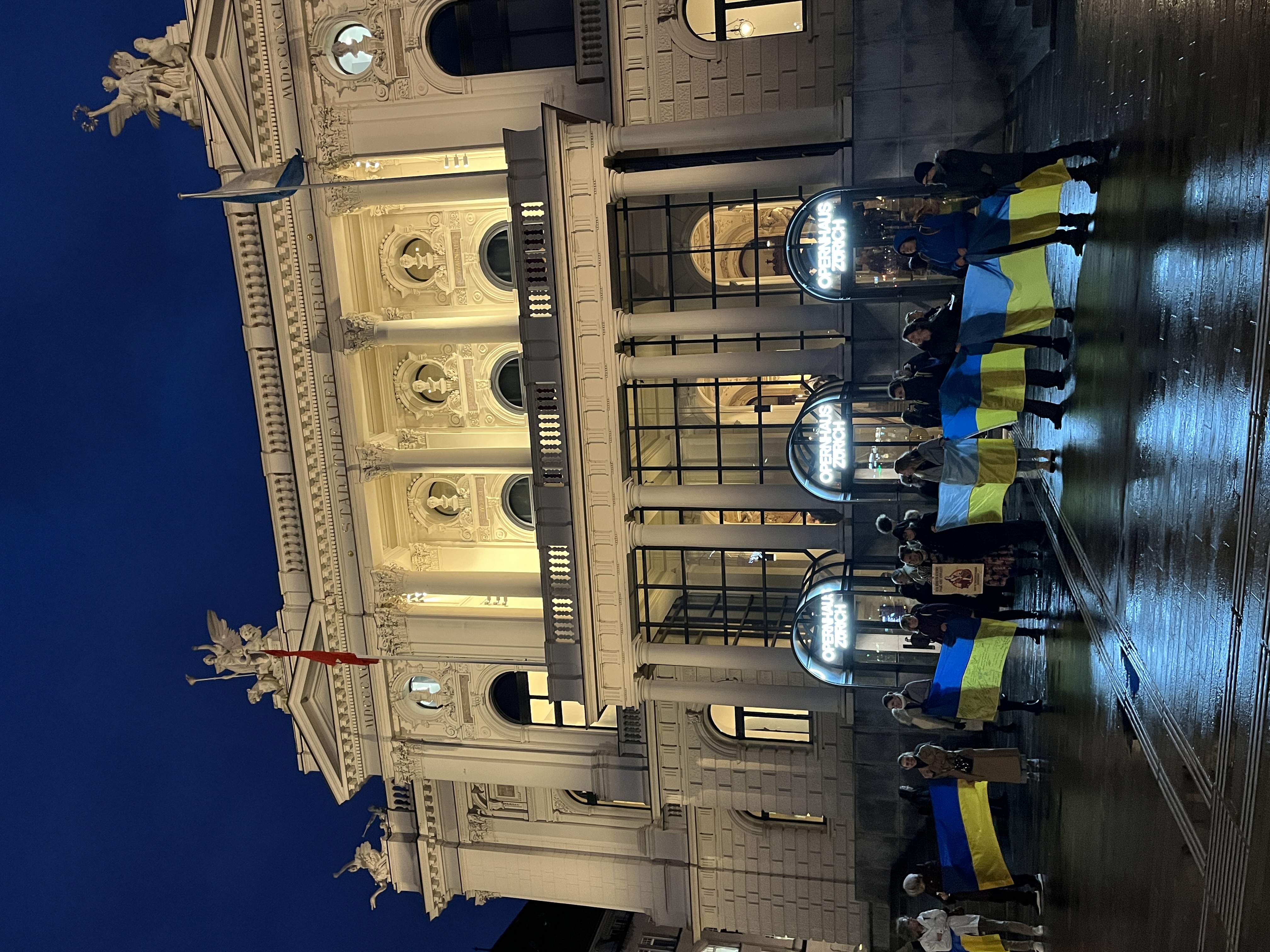… Je ne vais pas me prononcer sur la légitimité juridique et/ou morale de tous ces juges, mais c'est avec ce bagage informationnel et émotionnel que je me suis rendue à la première de La forza del destino à Zurich. Devant l'entrée du théâtre, un groupe d’une vingtaine de personnes était présent, drapeaux ukrainiens en main. Les spectateurs passant devant eux étaient informé qu'« Anna Netrebko est un instrument du Kremlin ». Le programme du spectacle était accompagné d'un feuillet doté d’un code QR grâce auquel chacun pouvait prendre connaissance de la position du directeur du théâtre sur la question de l'invitation de la chanteuse russe. Je n’ai remarqué aucune mesure de sécurité particulière.