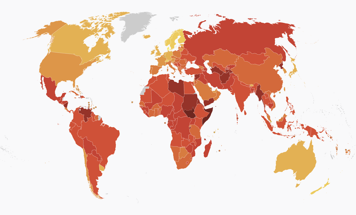 Чем краснее страна, тем ниже ее рейтинг (с) Transparency