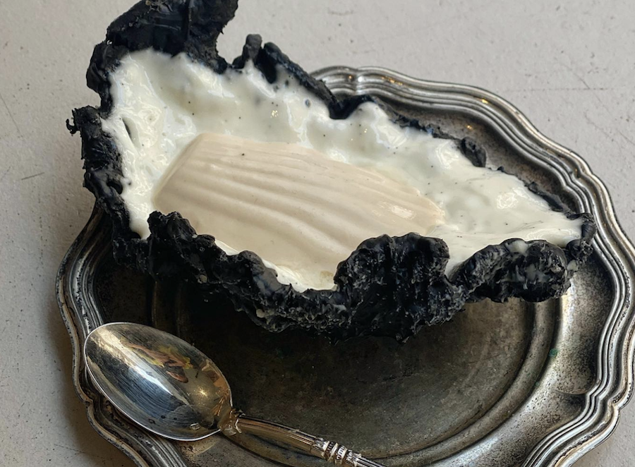 В своей серии, посвященной французским клише, Алина, например, создала десерт, поразительно напоминающий устрицу: соленая карамель, сделанная вручную сахарно-шоколадная «раковина» и «моллюск» из кофейной панакотты, гладкая и скользкая текстура которой так похожа на оригинал. «Французский завтрак» представляет собой полную окурков пепельницу: на самом деле это тарт с лимонным курдом и хрустящие меренги в форме сигарет. В аккаунте Алины в Instagram есть и другие замечательные примеры, включая сетку «заплесневевших» лимонов, сделанных из миндального крамбла, лимонного ганаша и белого шоколада, а также свечи из сливочного масла и съедобную палетку помад.
