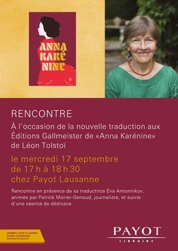Чуть больше двух лет назад мы рассказывали вам о Еве Антонниковой, в то время работавшей над новым французским переводом романа Льва Толстого «Анна Каренина». И вот титанический труд завершен, и 17 сентября в Лозанне у вас будет возможность познакомиться с Евой и задать ей все интересующие вас вопросы. Но сначала советуем освежить память, прочитав наше уже архивное интервью.