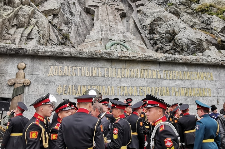 24 сентября в Андерматте прошли торжества в честь 220-летия перехода Александра Суворова через Альпы - эту тему Наша Газета "ведет" в течение всей недели. Юбилейную церемонию посетили посол Российской Федерации в Швейцарии Сергей Гармонин, дивизионный генерал Швейцарии Лукас Кадуфф, посол Швейцарии в Бразилии Андре Регли, а также другие представители военной и гражданской общественности России и Швейцарии. Фото: Даша Чернова Бургер