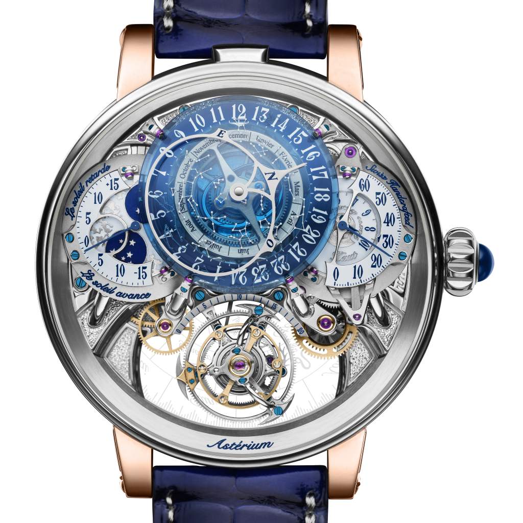 Восторг знатоков в очередной раз вызвал призер в категорииЧасыскалендарнымииастрономическимиусложнениями, в которойсоревнуются мужские механические часы,содержащие как минимум одну календарную и/или астрономическую функцию:указатель даты,годовой календарь,вечный календарь,уравнение времени,сложный индикатор фаз Луны и т.д.Допускаются дополнительные усложнения. Лауреатом стала модельRécital 20 Astérium бренда Bovet 1822.