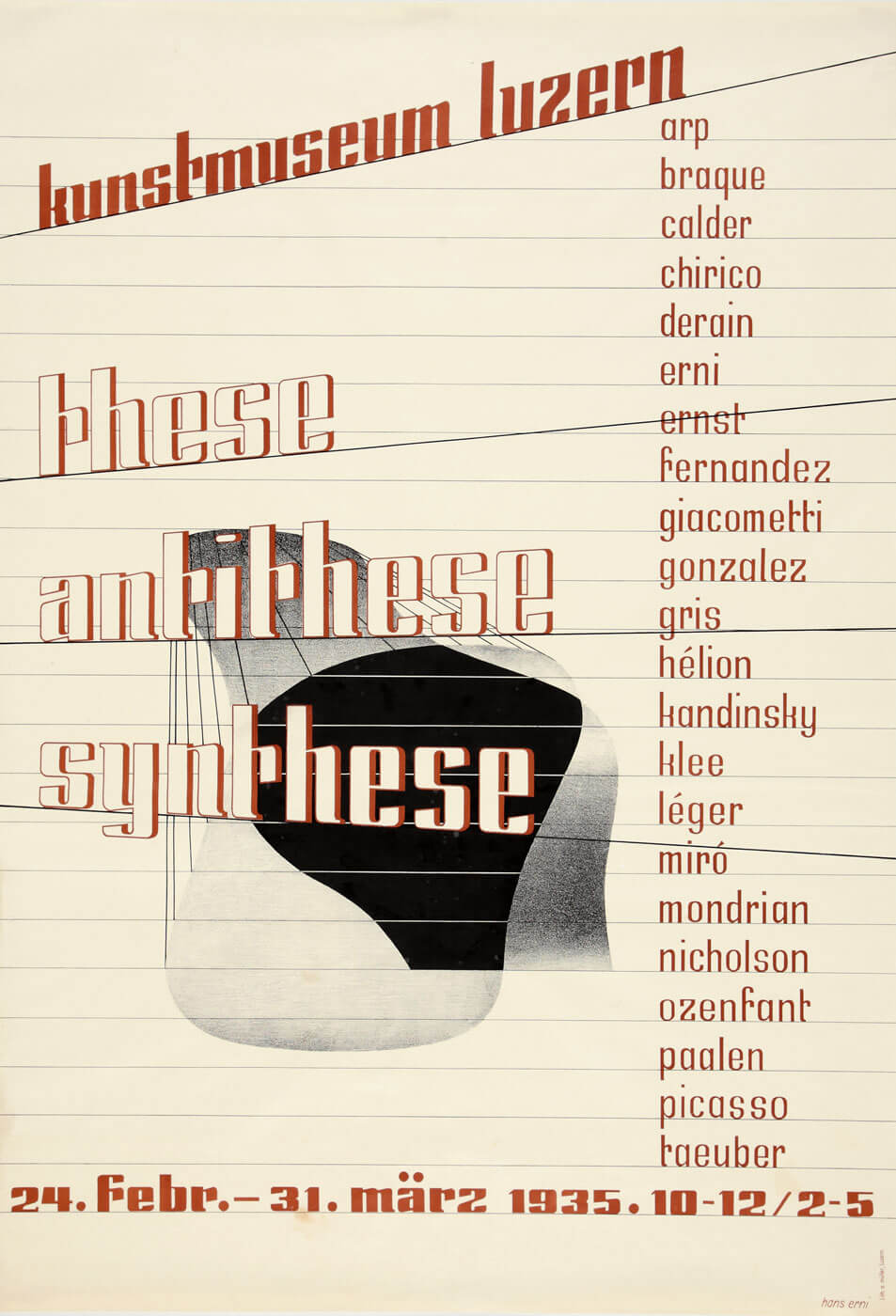 Ханс Эрни. Афиша выставки "Тезис, антитезис, синтез", 1935 г., Kunstmuseum Luzern, Foto: Andri Stadler