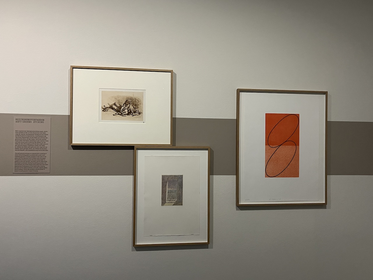Наконец, последняя из представленных на выставке техник – это Siebdruck, то есть шелкография (трафаретная печать). Заключается она в том, что через тканевую сетку краска проталкивается на бумагу, а, там, где трафарет ее закрывает, не проталкивается. Эта любимая техника Энди Уорхола позволяет делать яркие, плоскостные силуэты, многослойность. К сожалению, работ Уорхола на выставке нет, но зато есть две из «Шести Пикадиллий» Дитера Рота 1970 года и множество других, разнообразных и прекрасных, полюбоваться которыми вы можете до 25 января 2026 г.