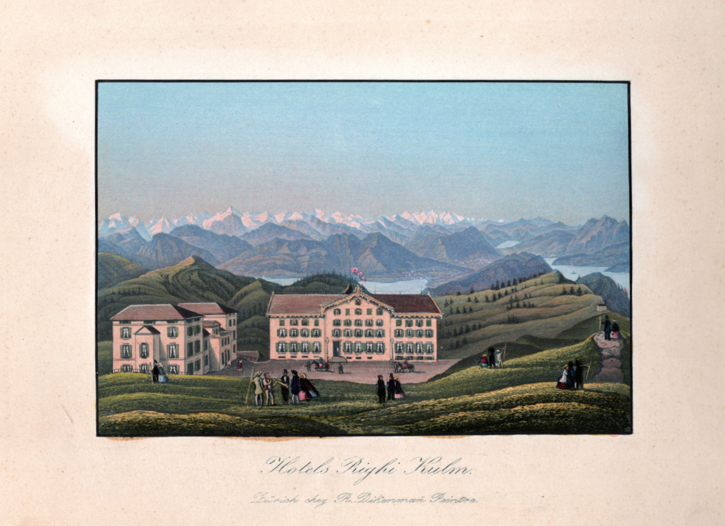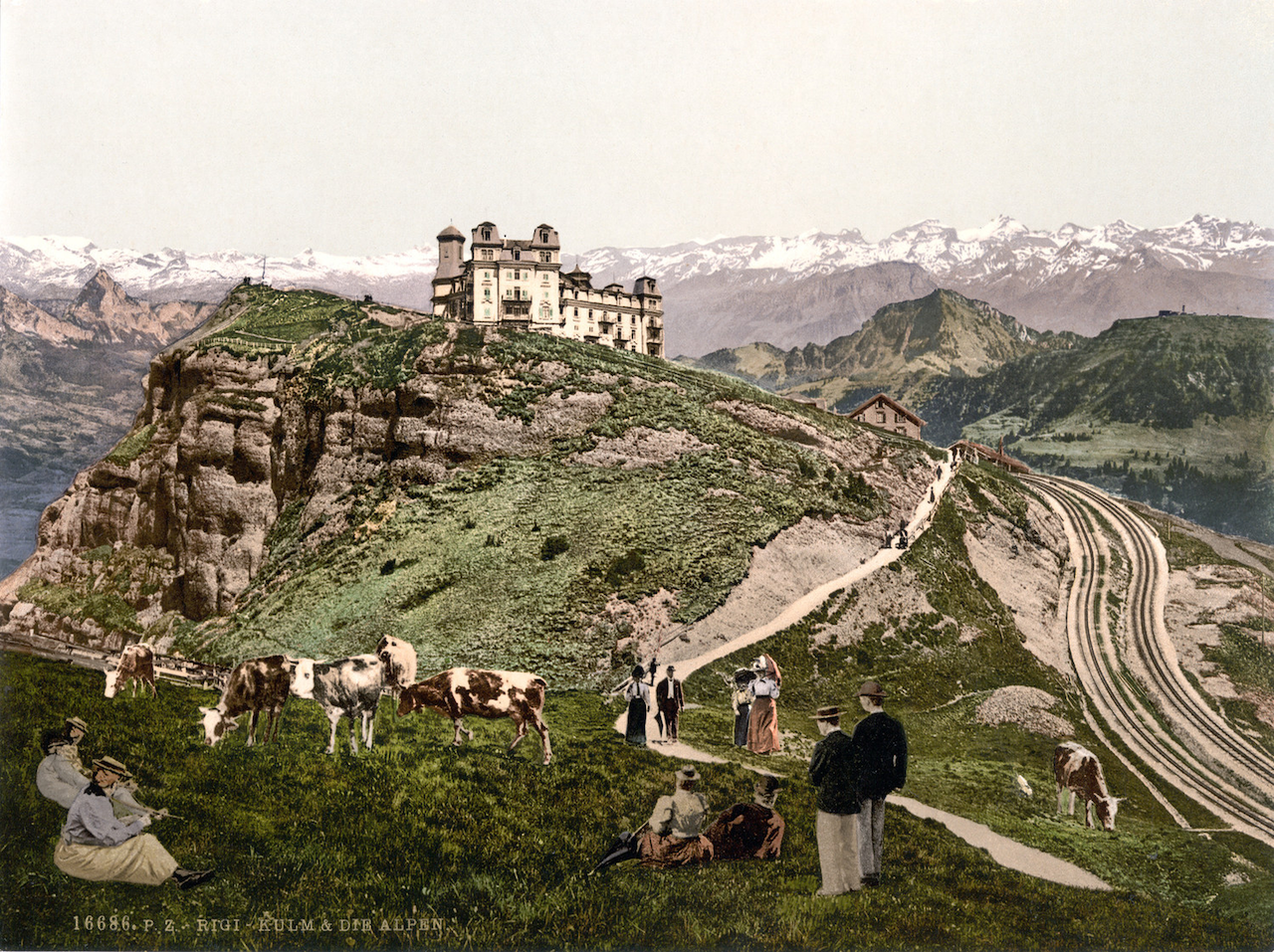 Отель на Риги-Кульм и вид на Бернские Альпы. Фотография начала 20 векаОтель на Риги-Кульм и вид на Бернские Альпы. Фотография начала 20 века