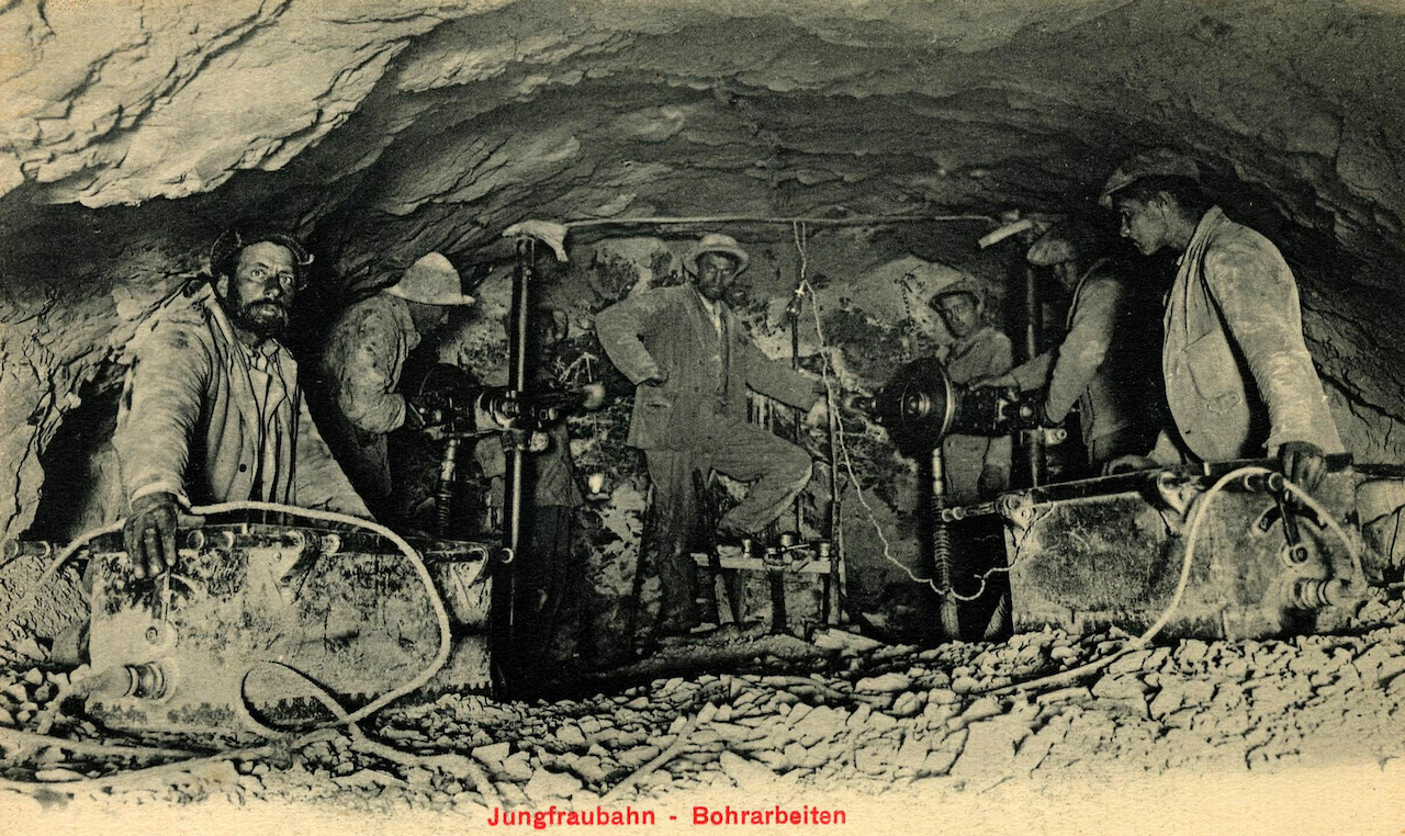 Далее предстояло приступить к постройке тоннеля, который должен был пройти прямо сквозь толщу гор Эйгер и Мёнх. Гуйер-Целлер собирался построить его за несколько лет, но работы продвигались с большим трудом, и в итоге строительство продолжалось целых 14 лет, с 1898 по 1912 год! Серьезные проблемы возникали при осуществлении взрывных работ. 26 февраля 1899 года в результате взрыва погибло шесть итальянских рабочих. Да и сам предприниматель не дожил до окончания строительства, скончавшись в апреле 1899 года. Удивительно, как повторяется история - строителю тоннеля Сен-Готард Луи Фавру тоже не довелось увидеть завершения дела своей жизни.