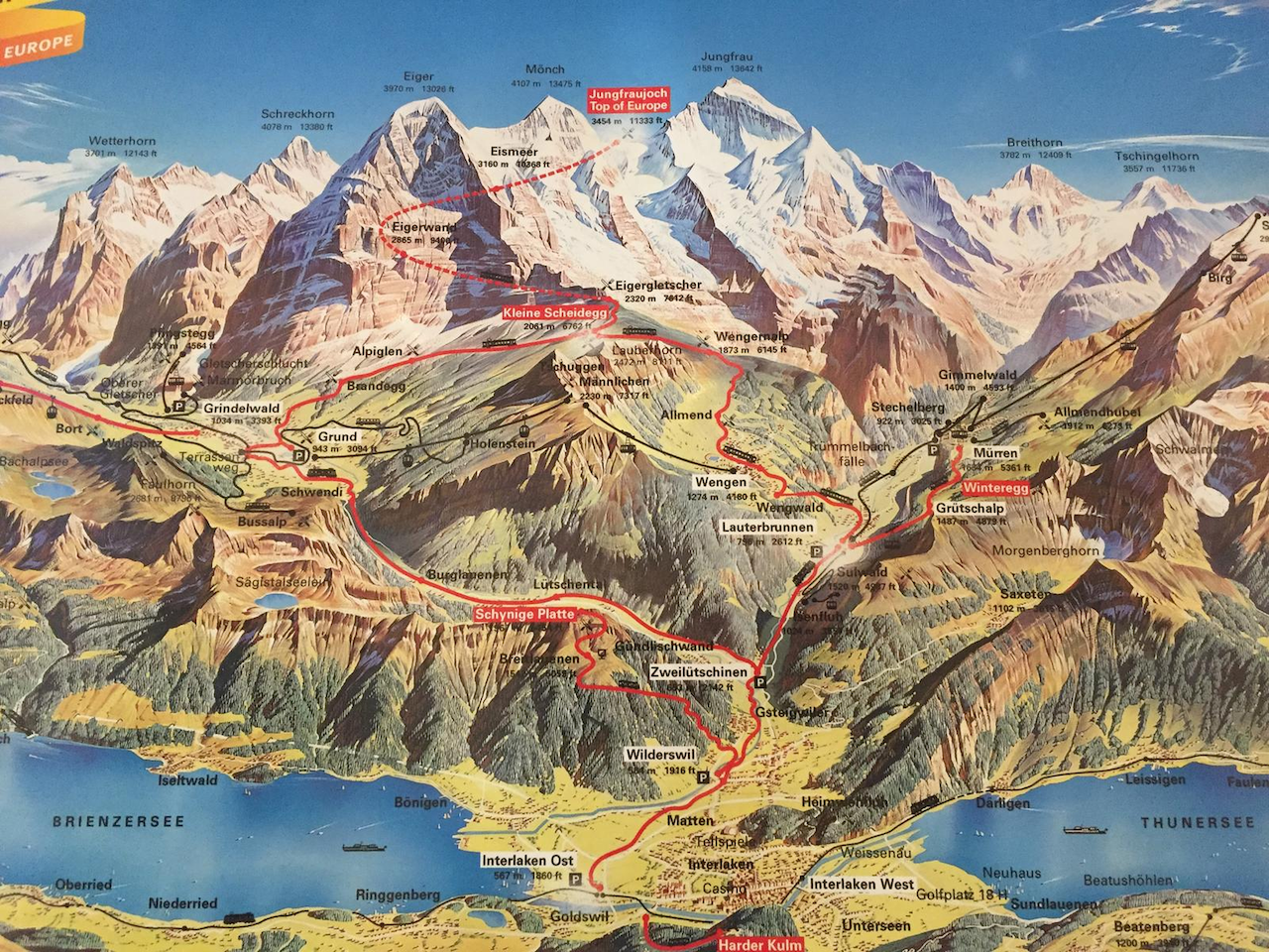 Эта карта позволяет понять, где проходила зубчатая дорога «Юнгфраубан»
