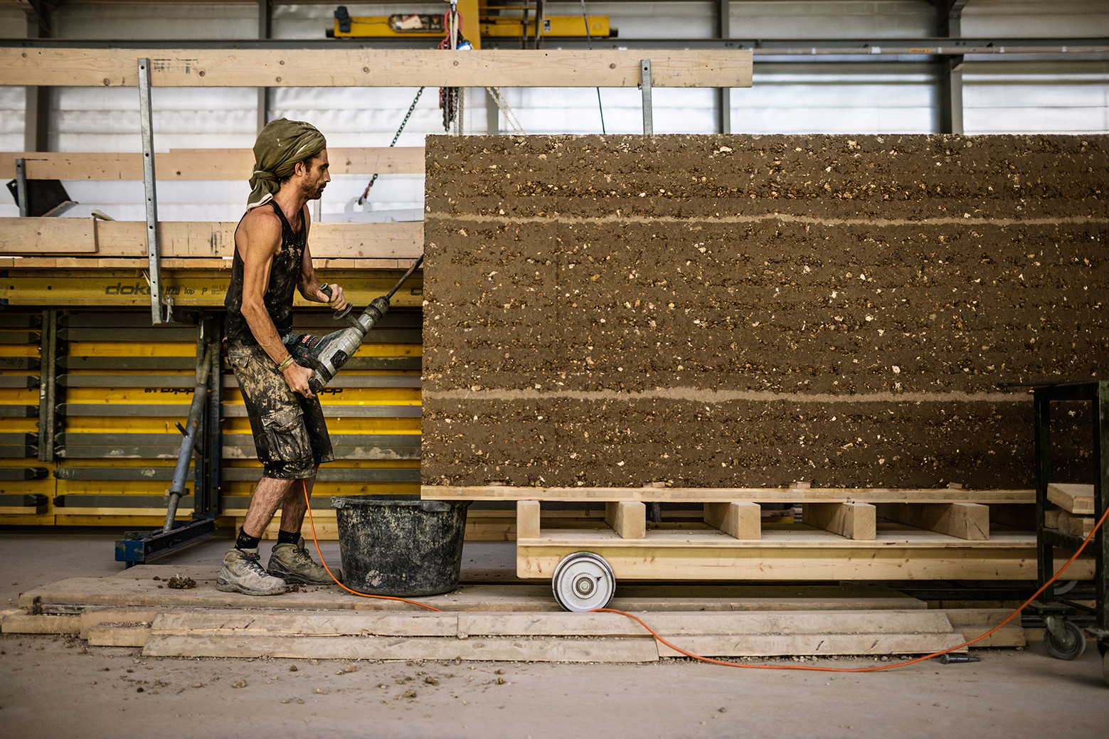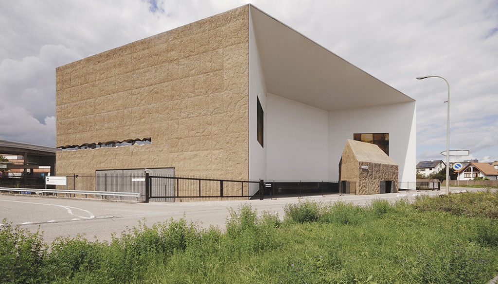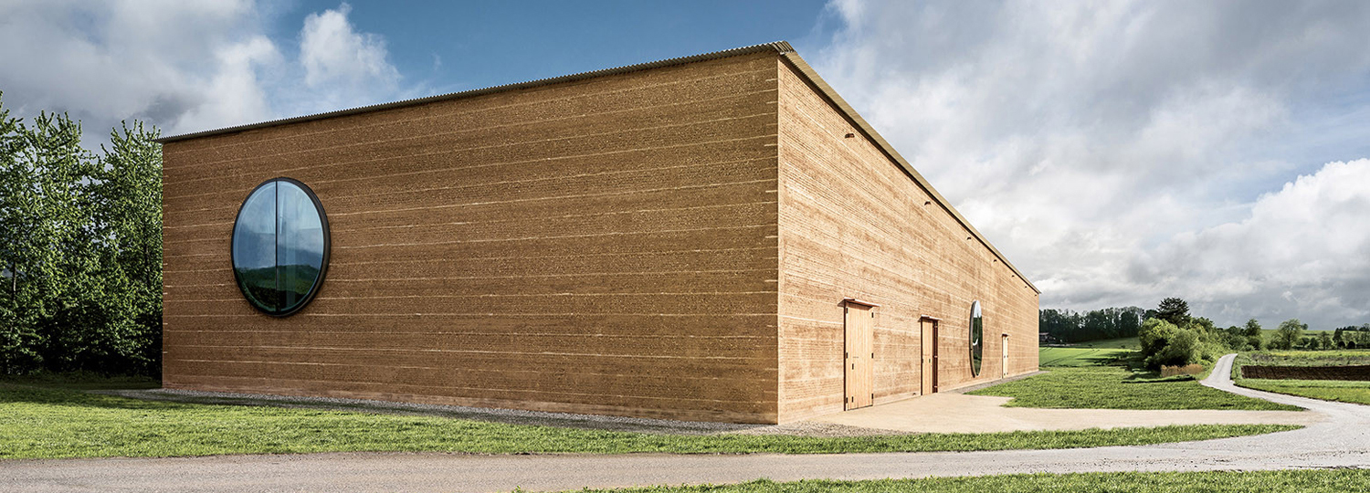 Заказчик с самого начала был ориентирован на экологичное строительство, и в этот раз Herzog & de Meuron решили использовать уже не бетон, создающий образ «земляного дома», а буквально землю, камни и глину. В качестве основного стройматериала выбрали богатую глиной местную почву и привлекли признанного в Европе эксперта по глинобитным постройкам австрийца Мартина Рауха и его бюро Lehm Ton Erde, базирующееся в австрийской земле Форальберг.